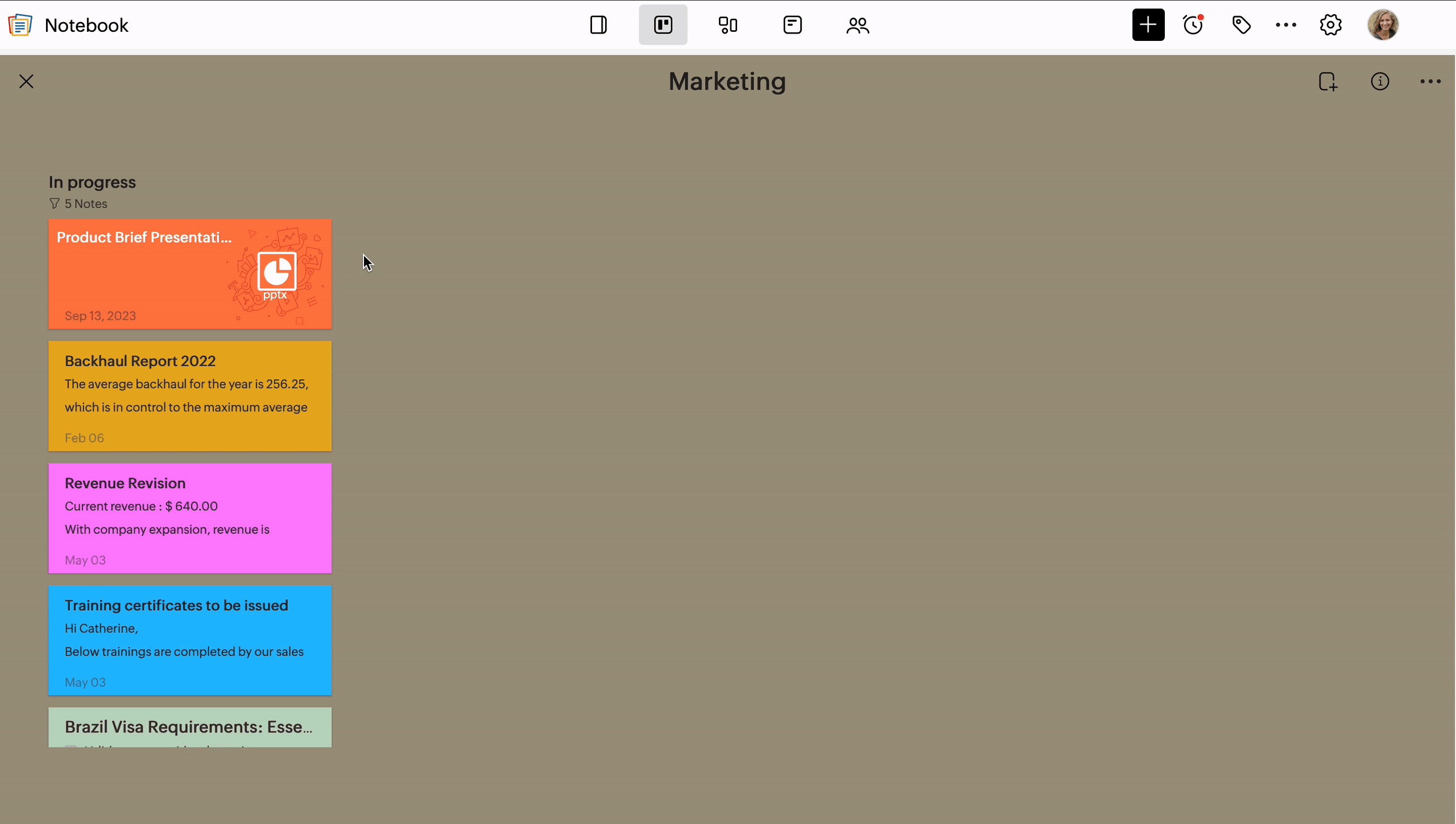 Zoho Notebook の Noteboards で、メモの記録や整理を強化しましょう。このカンバンボード機能を使うと、フィルターされたノートカードのリストを複数作成・管理したり、カスタムフィルターを設定したり、メモをまとめて表示したり、簡単に共有できます。Noteboards を活用することで、個人・業務のワークフローが効率的に整理され、生産性も向上します。