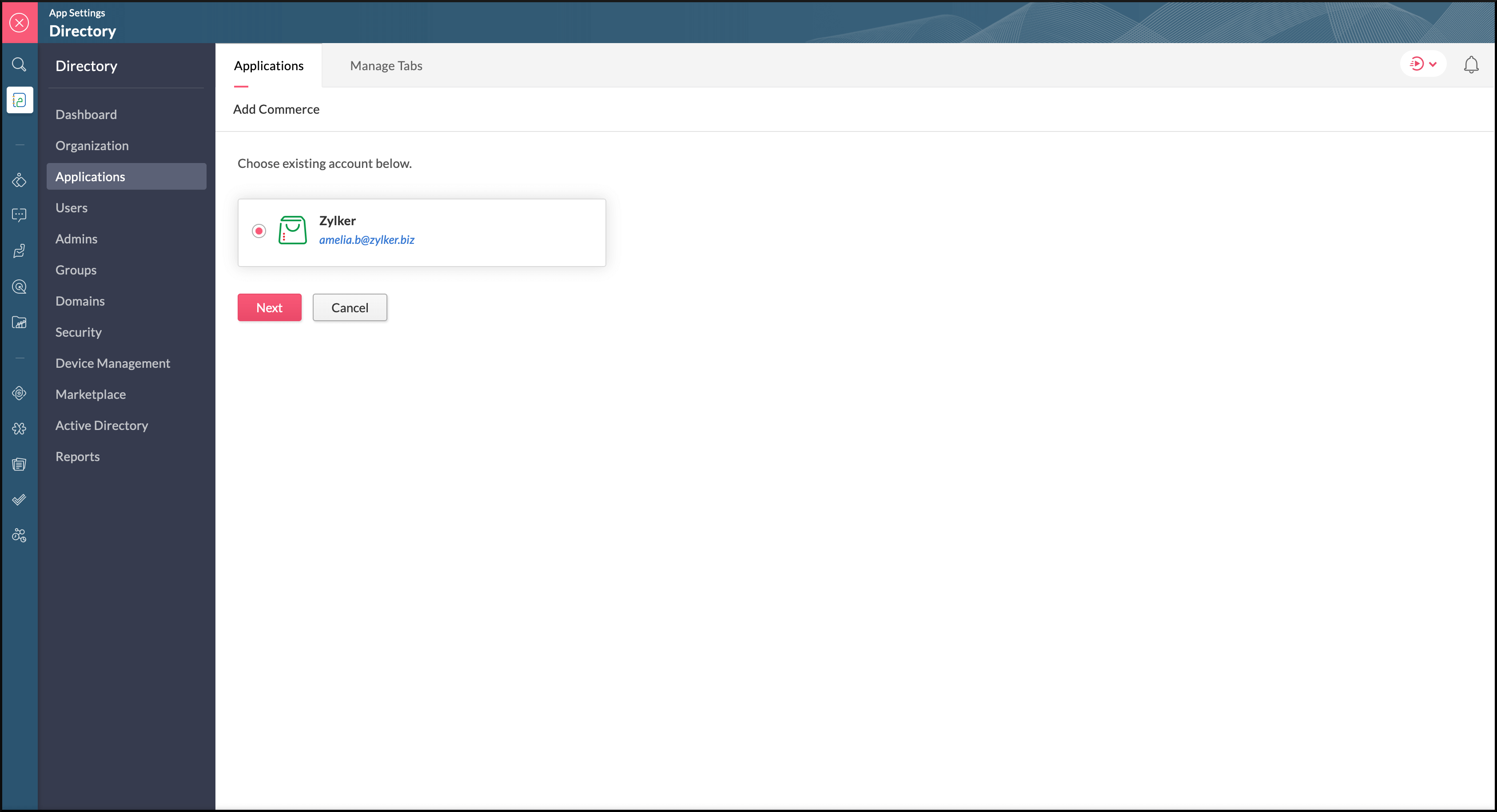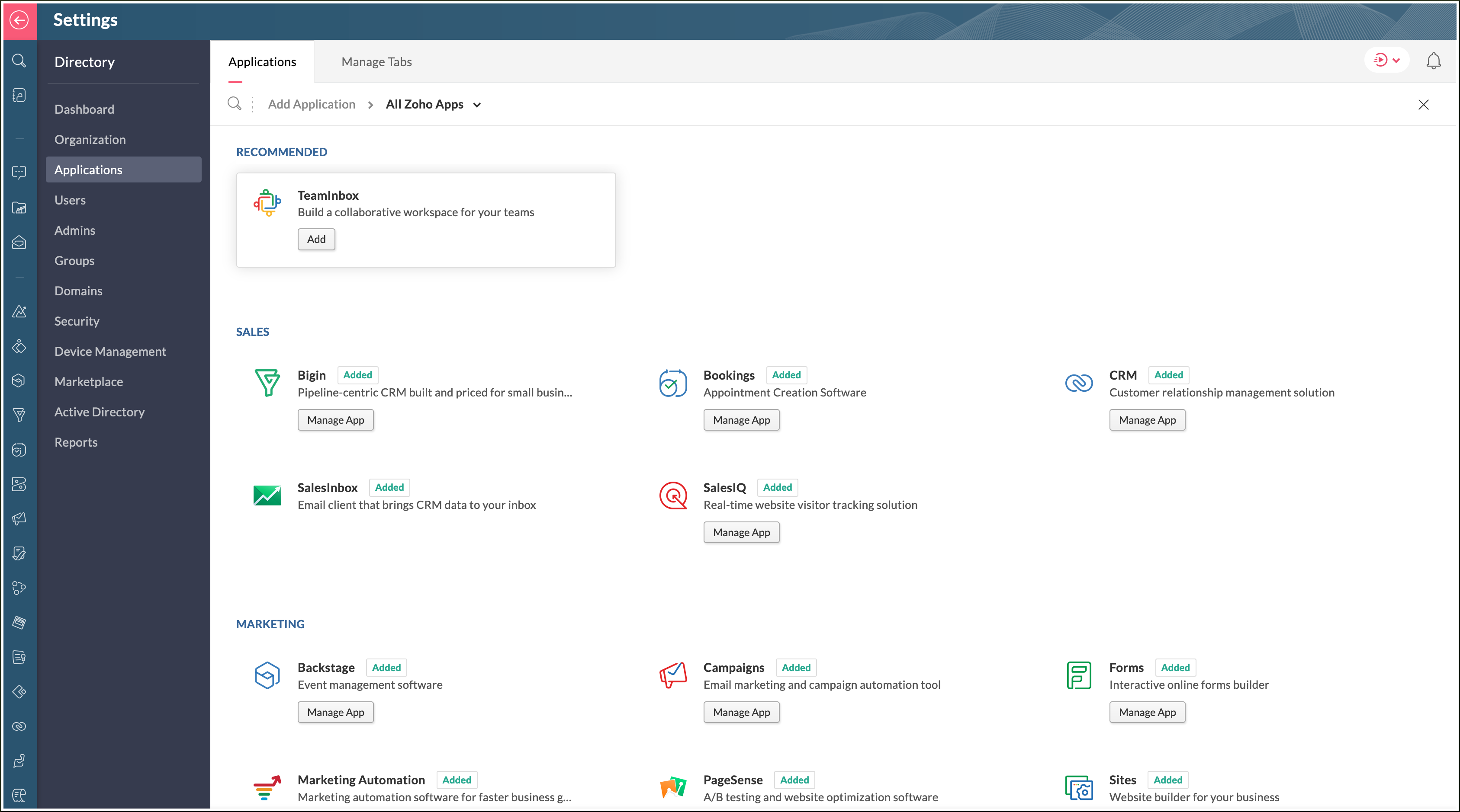 1. Zoho One  にサインインして、画面左側のメニューから [Directory]をクリックします。