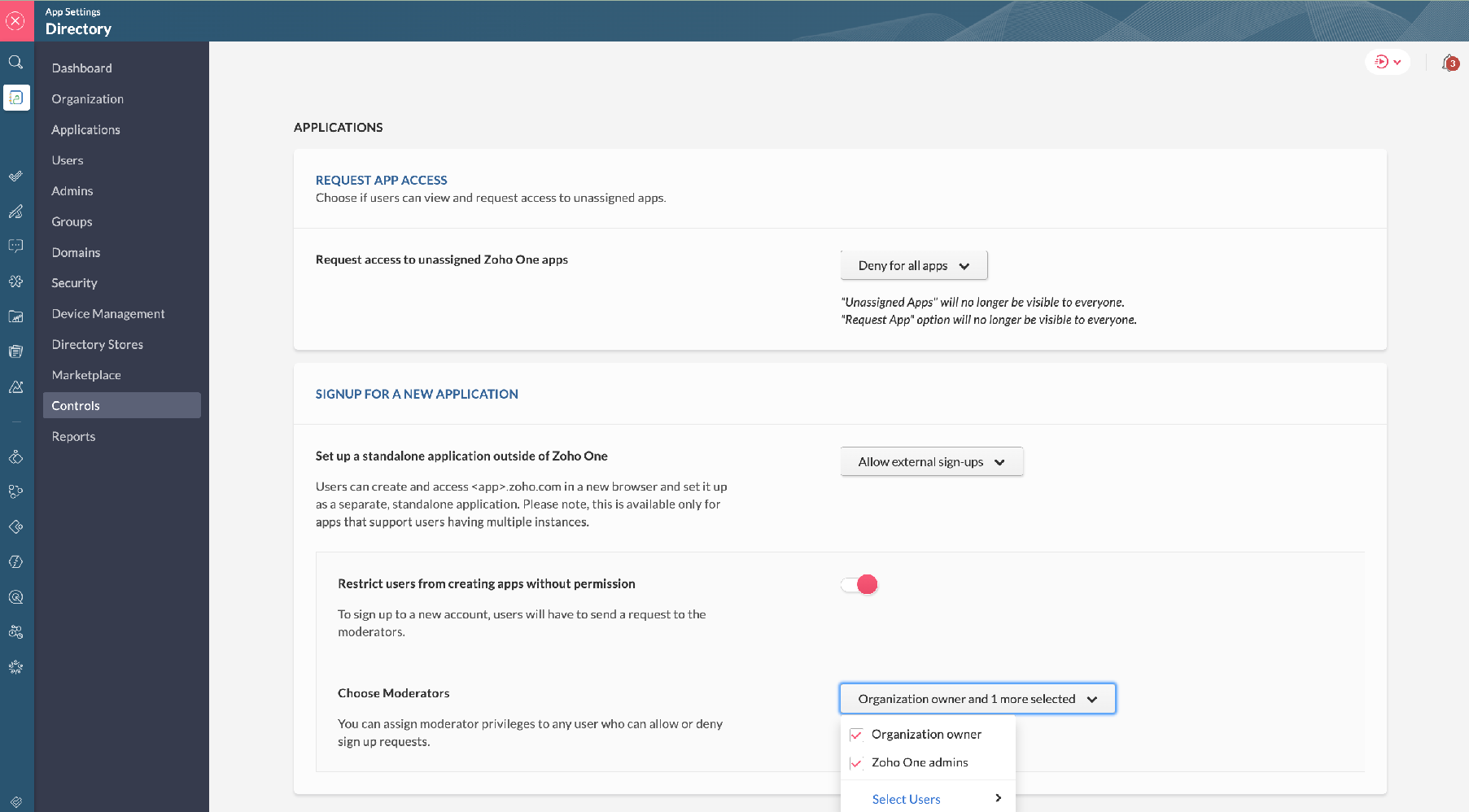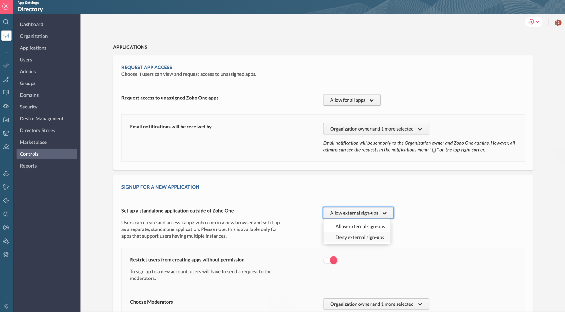 Zoho Oneの管理対象外で特定のアプリのアカウント作成を許可する手順