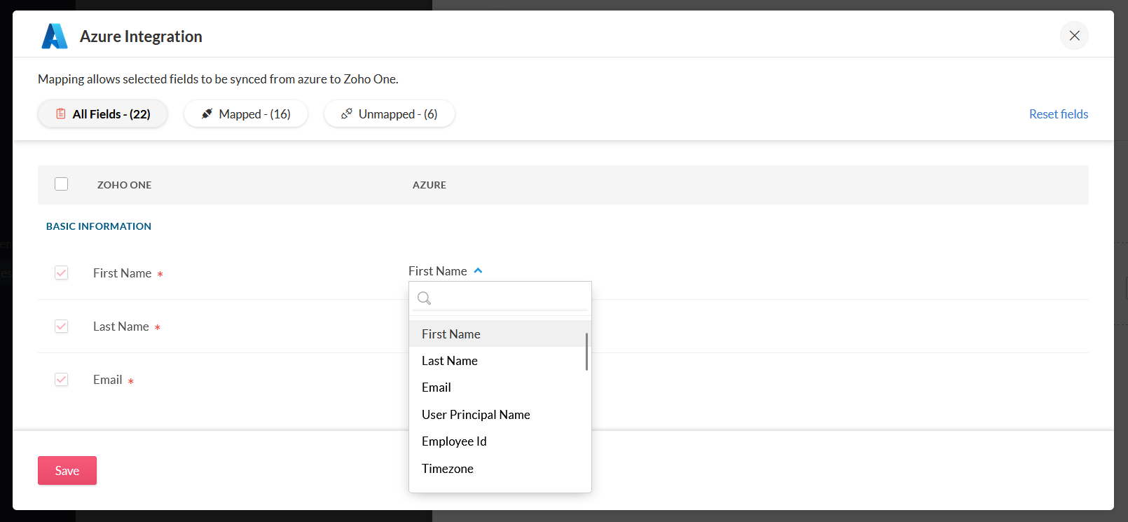 Microsoft AzureとZoho Oneの連携の設定