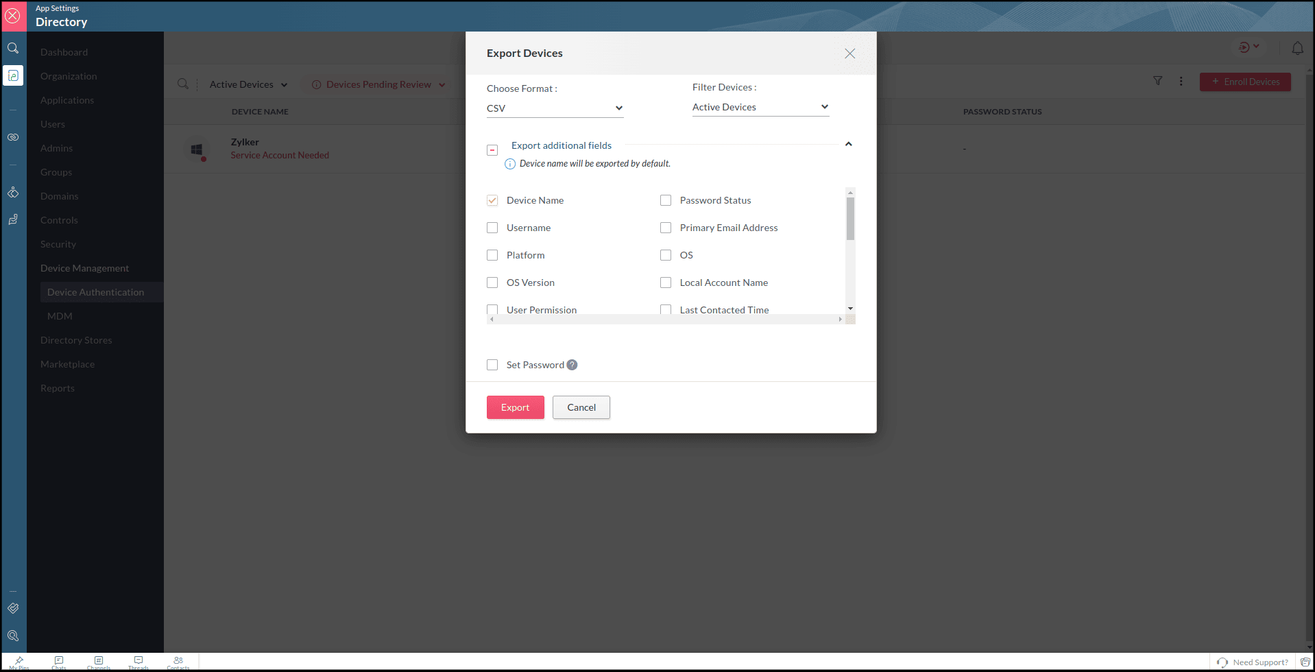 2. デバイスステータスに基づいてエクスポートする基準を絞り込みます:有効なデバイス無効なデバイスすべてのデバイス、またはフィルタリングされたデバイス
