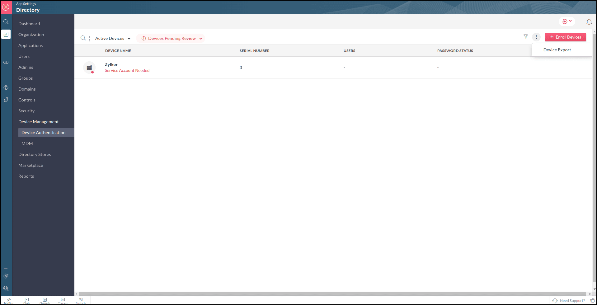 2. ナビゲートしてデバイス管理デバイス認証を開きます。右上隅にある をクリックします。次にデバイスをエクスポートするを選択します。