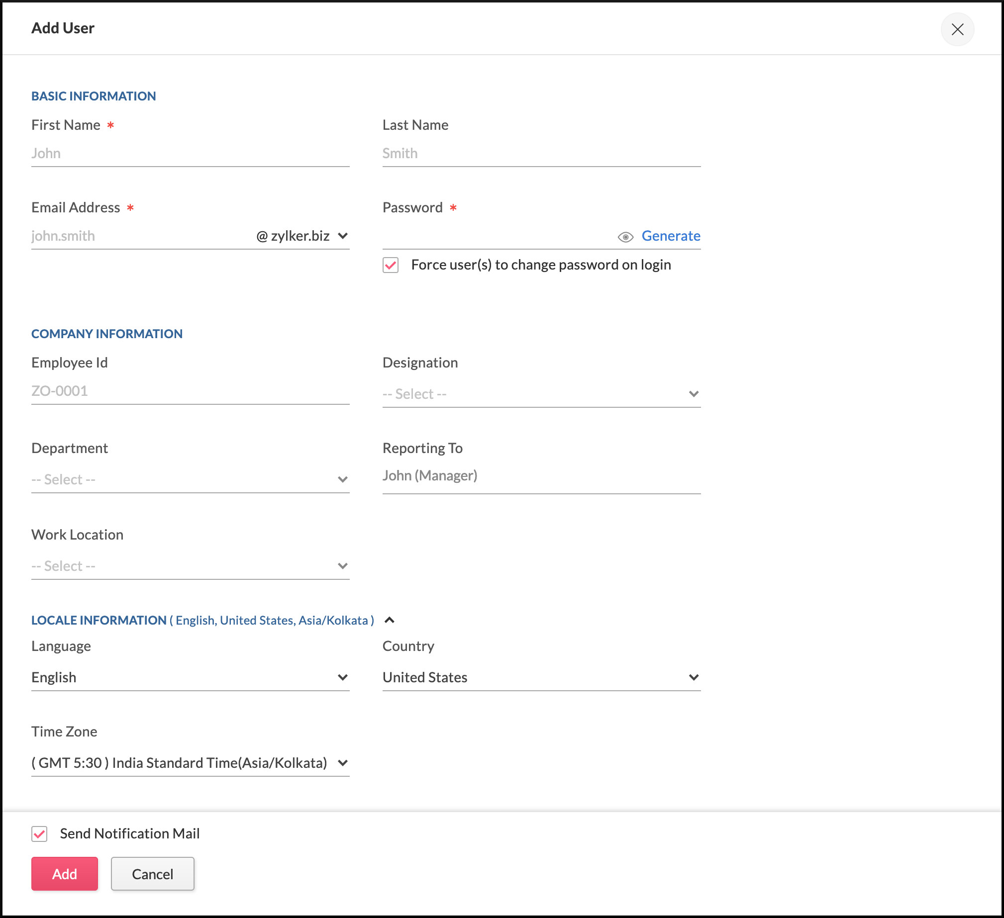 時間をおいて、もう一度お試しください。問題が解決しない場合は、 support@zohoone.com にご連絡ください。 |