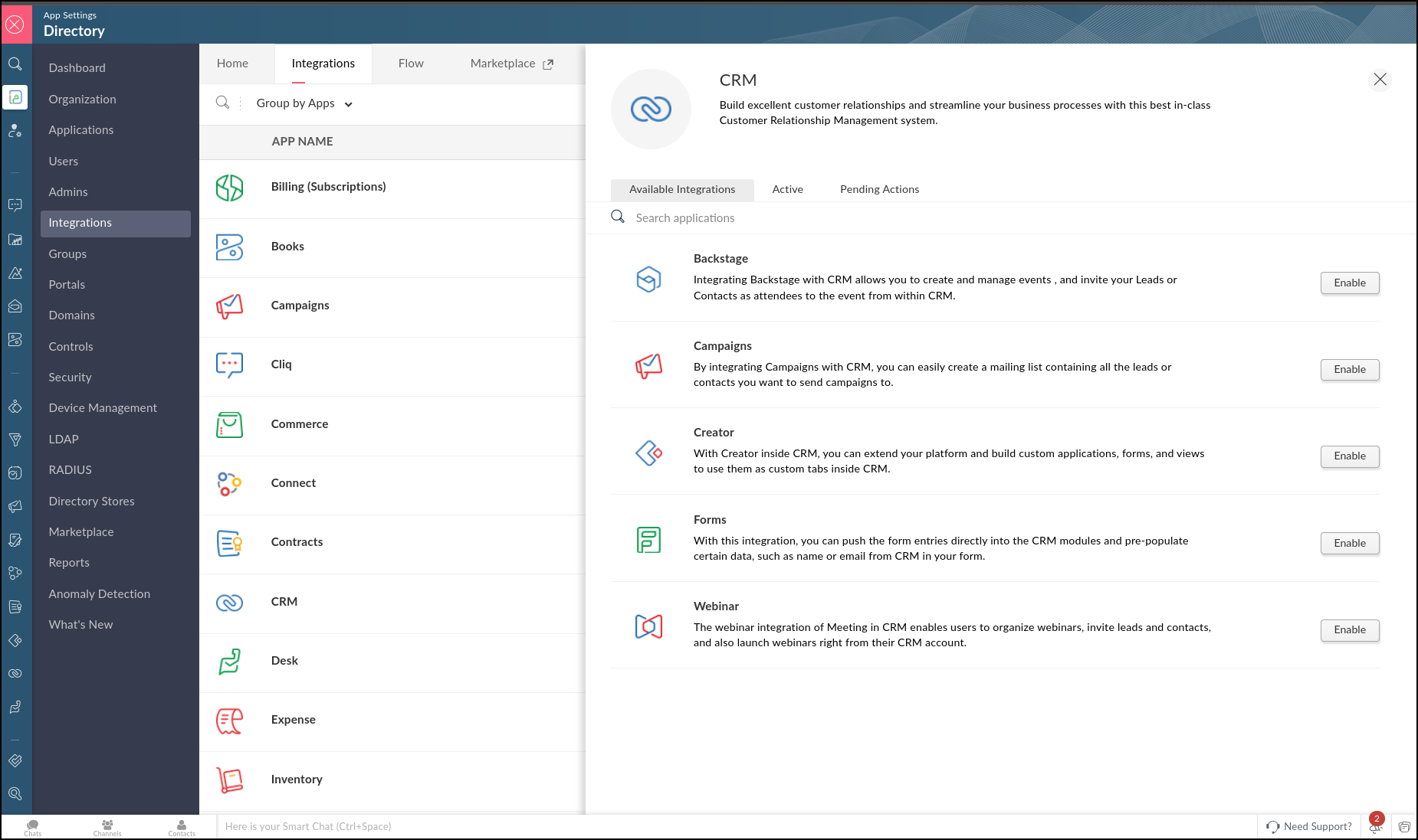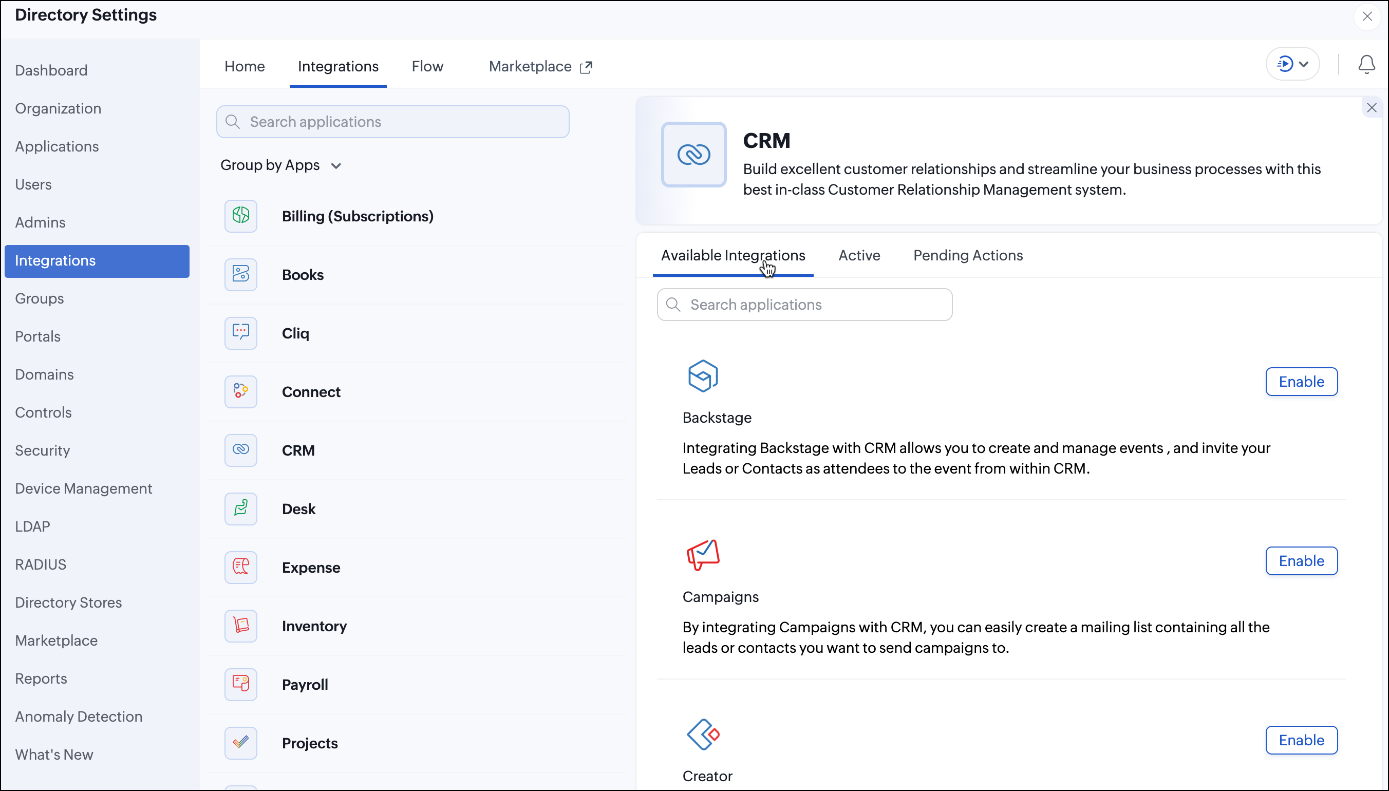 2. 左側のナビゲーションメニューで Directory をクリックし、次に Integrations をクリックします。