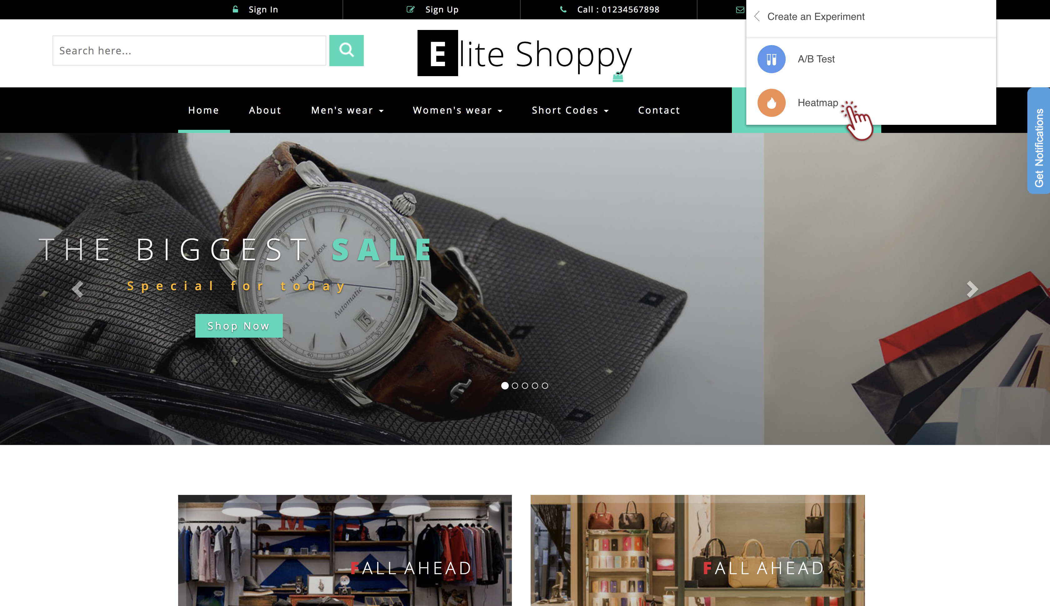以前に作成したA/Bテストとヒートマップ実験のリストが表示され、それぞれのステータス(開始中、一時停止中、実行中)も表示されます。