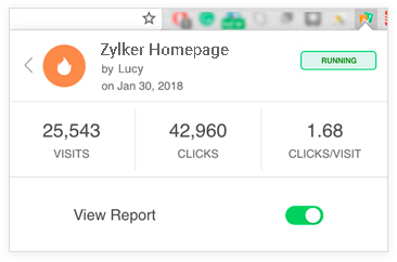 Zoho PageSenseは、Chrome拡張機能を使用して、ウェブサイトの各セクションでのユーザーのアクションを追跡し、ヒートマップ実験を作成することができます。さらに、この拡張機能を使用して、ヒートマップ、スクロールマップ、注目マップのレポートを詳細なメトリクス(訪問者数、クリック数、コンバージョンなど)とともに、実験ページ内で読み込み、表示することができます。ブラウザ内で直接確認できます。
