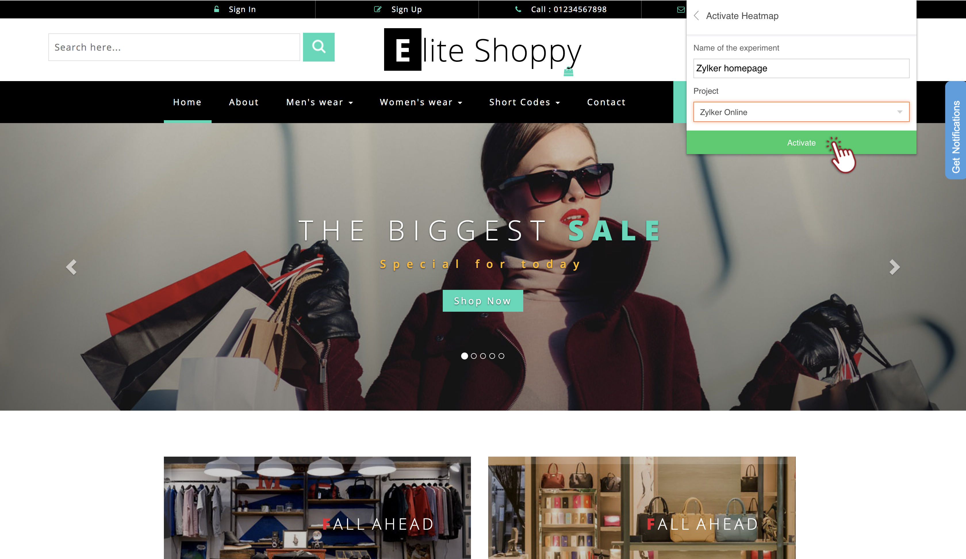 このヒートマップ実験の設定とレポートは、関連するプロジェクトのZoho PageSenseアカウント内で確認できます。