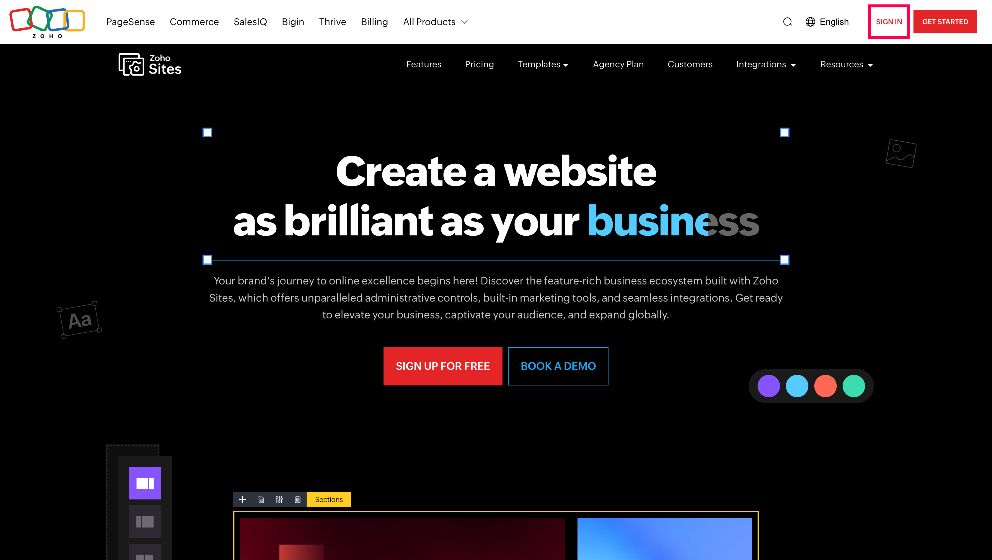 1.  WebブラウザでZoho Sitesのアカウントにログインし、編集を開くためにWebサイトを選択します。