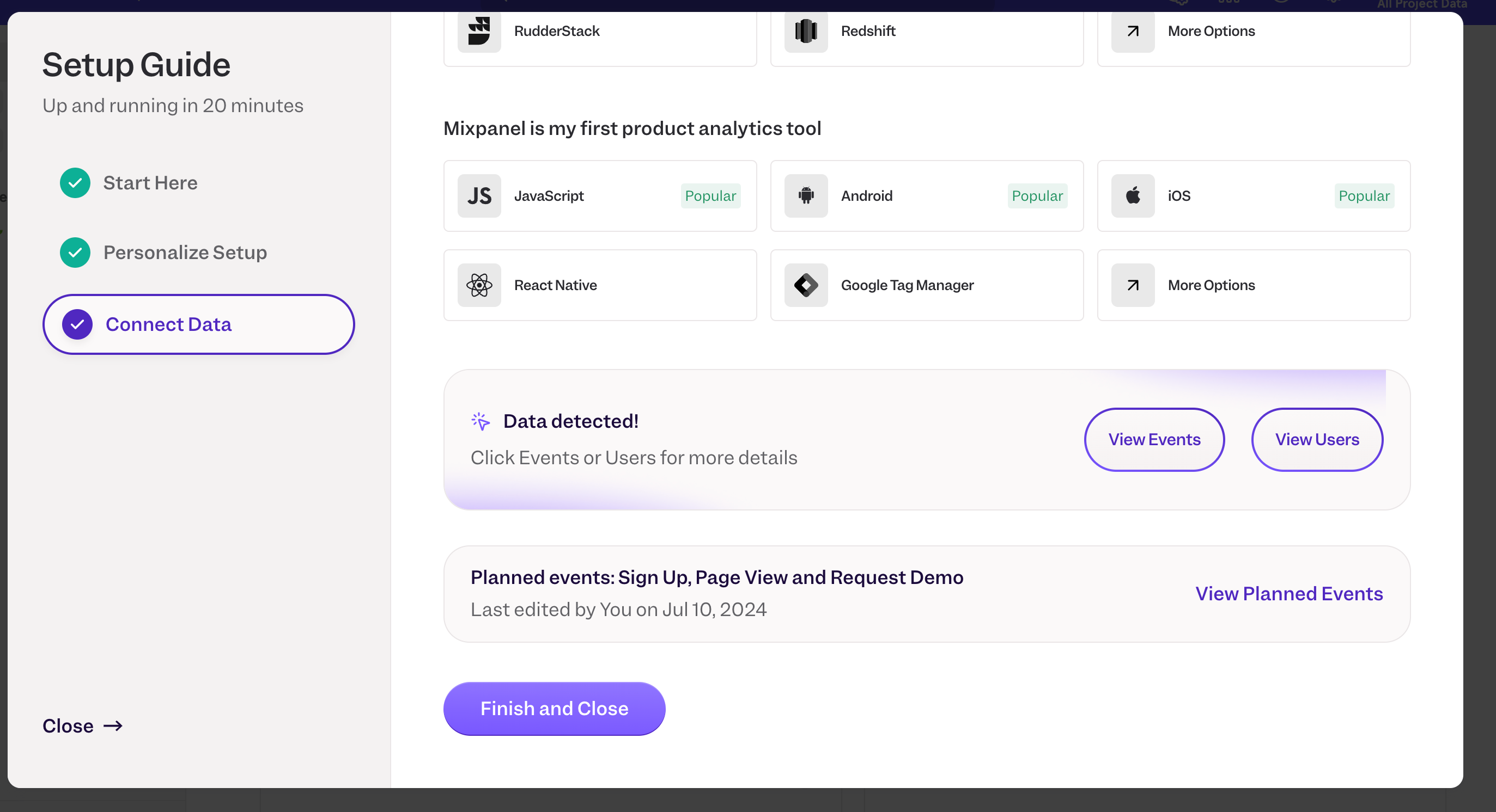 Mixpanel を利用して、実験ページ上での主要なトレンドやユーザー行動を把握できます