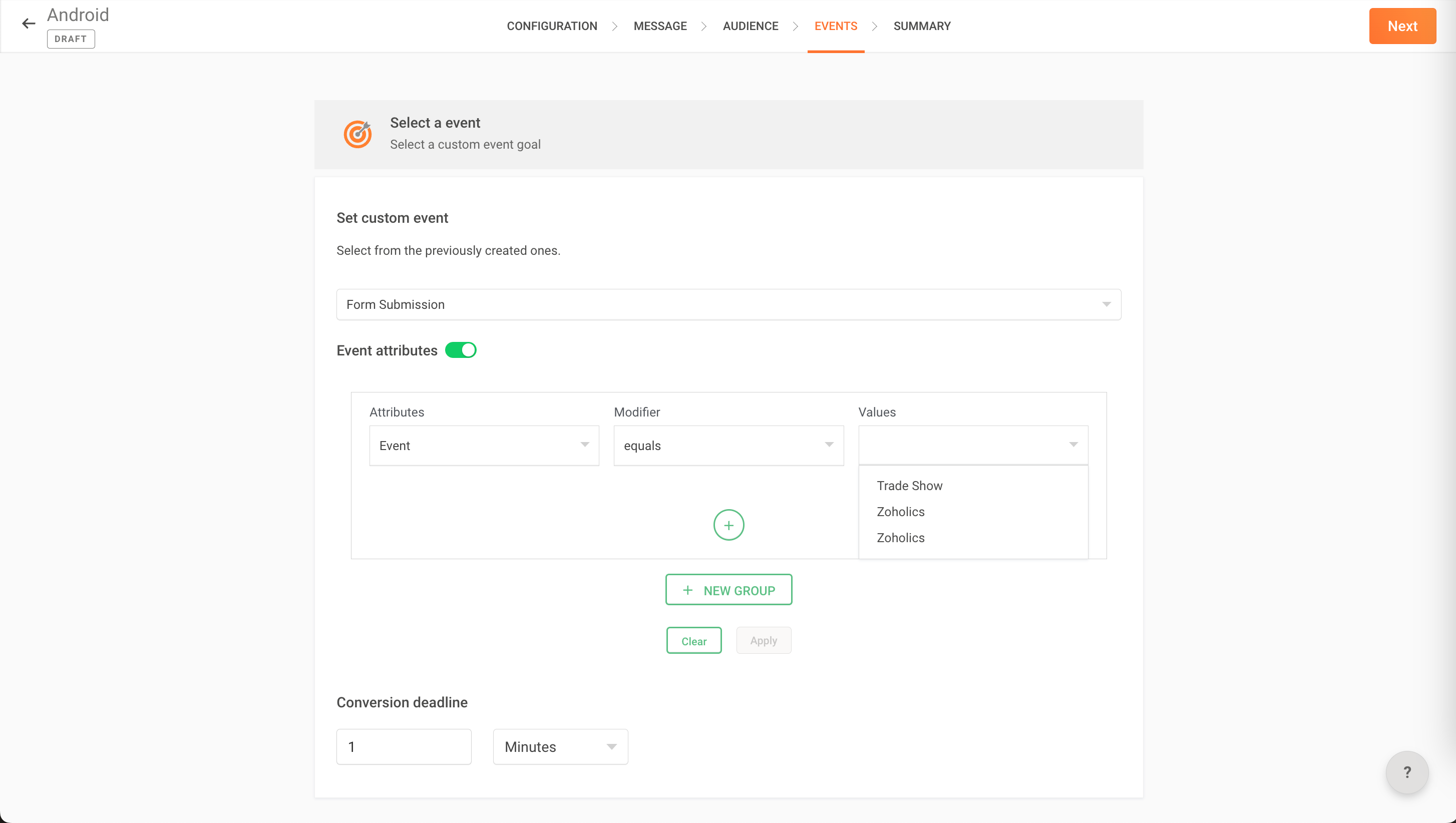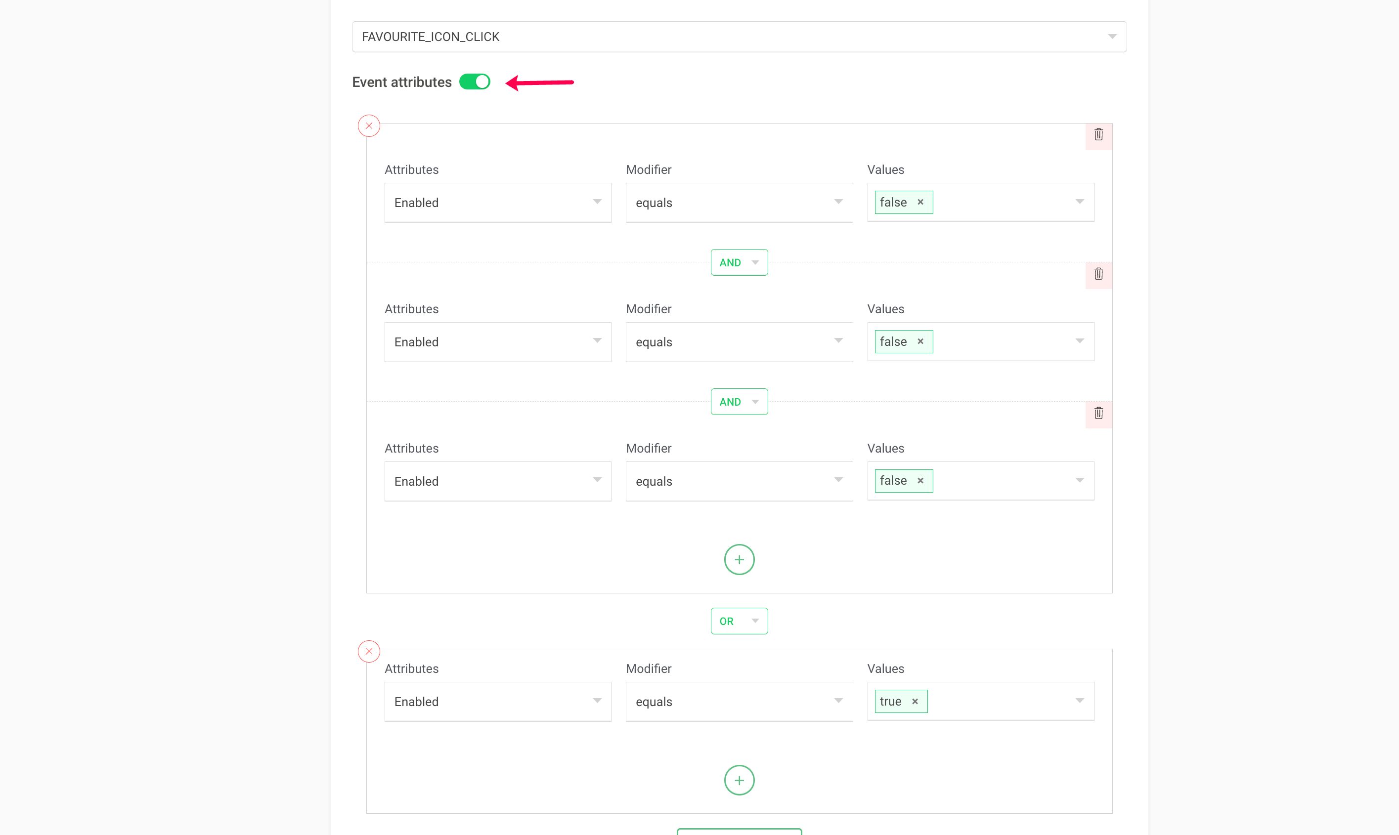 カスタムオーディエンスと同様に、各イベント属性内で複数のグループとサブセットを作成して、ニーズを満たすことができます。