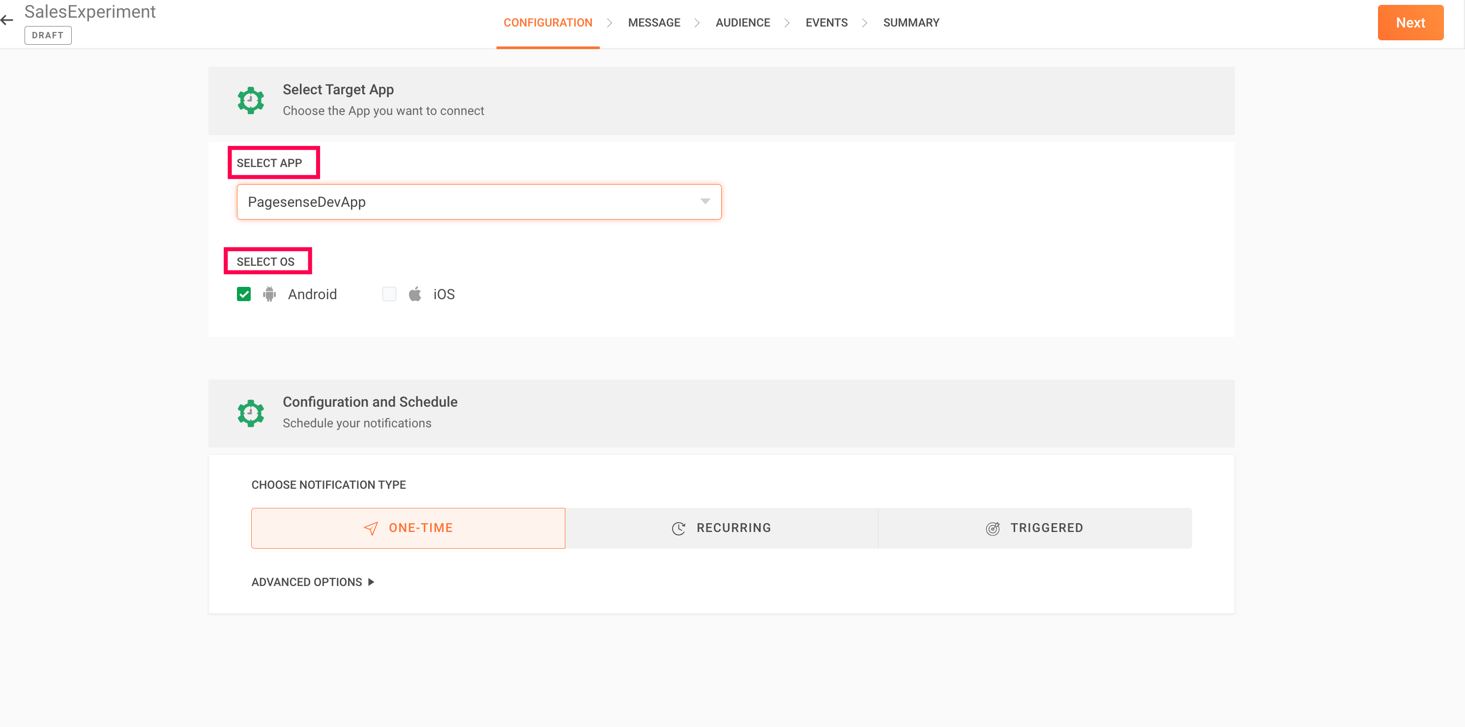 3. 通知を送りたいAppとターゲットにするOSを選択します。