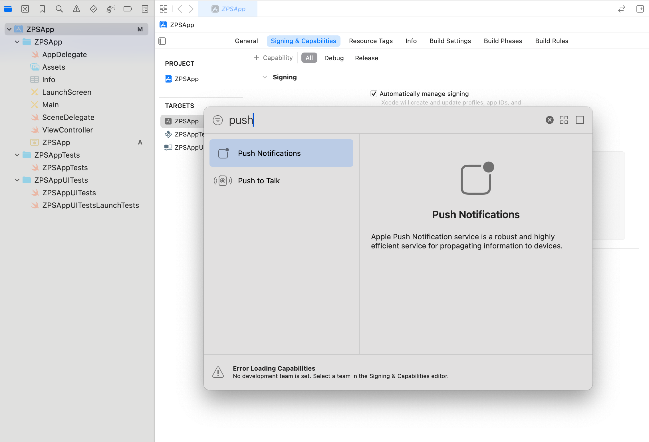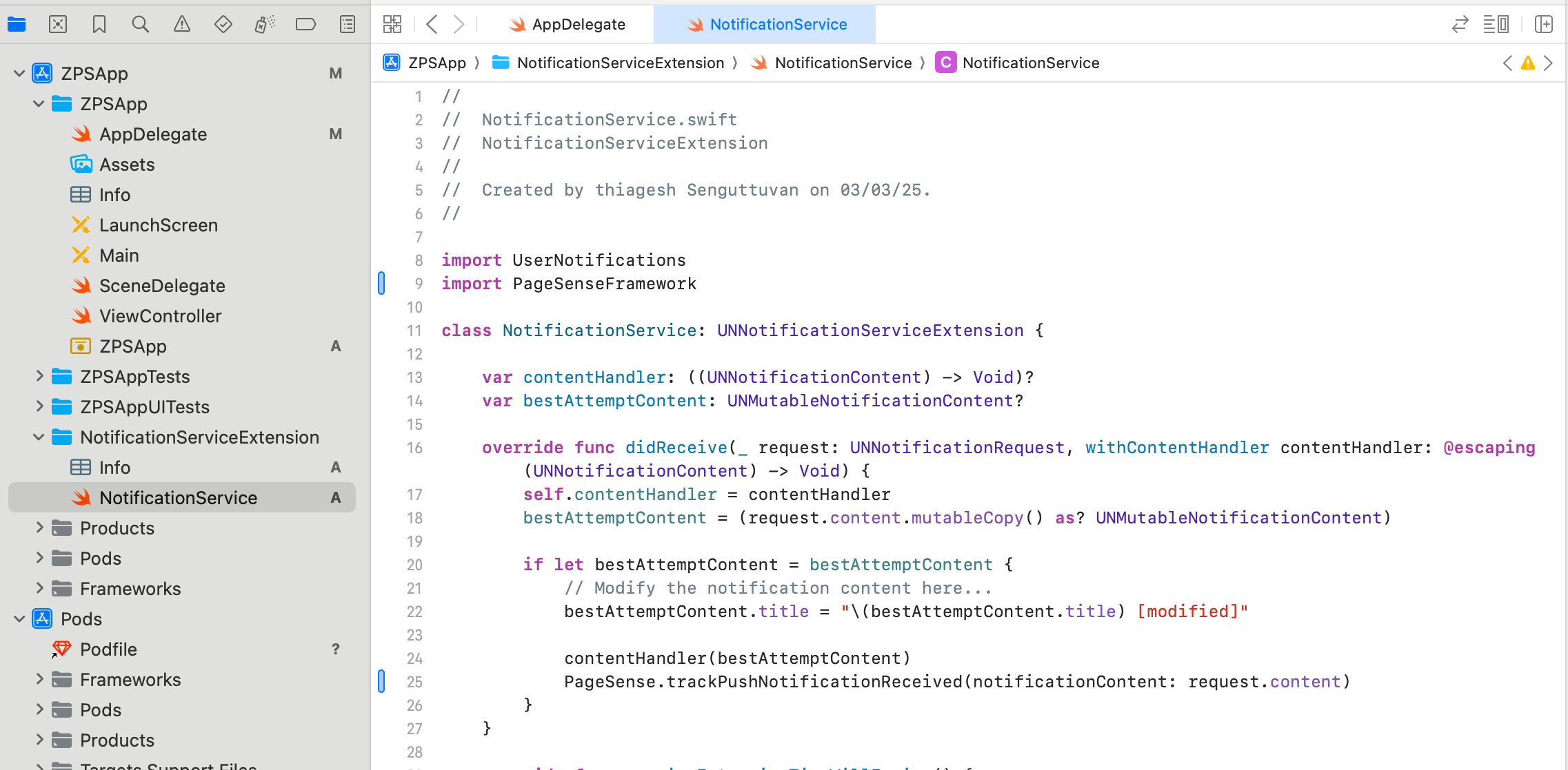 PageSense では、ダッシュボードからアプリケーションにプッシュ通知を送信できます。最初のプッシュ通知をアプリケーションに送信するには、次の手順に従ってください。リモートプッシュ通知をテストするには、実機の iOS デバイスを接続する必要があることに注意してください。リモートプッシュ通知はシミュレータでは動作しません。