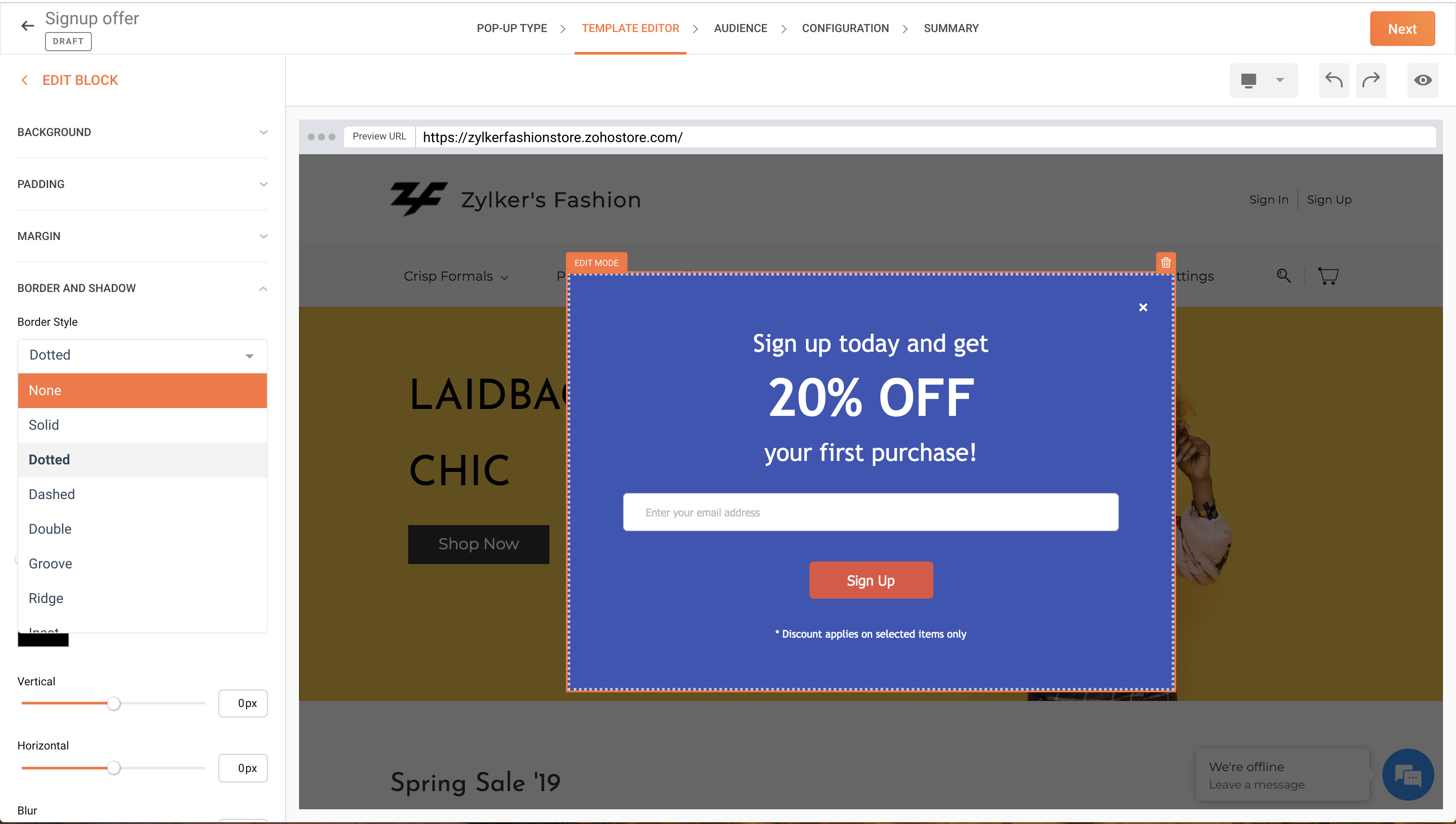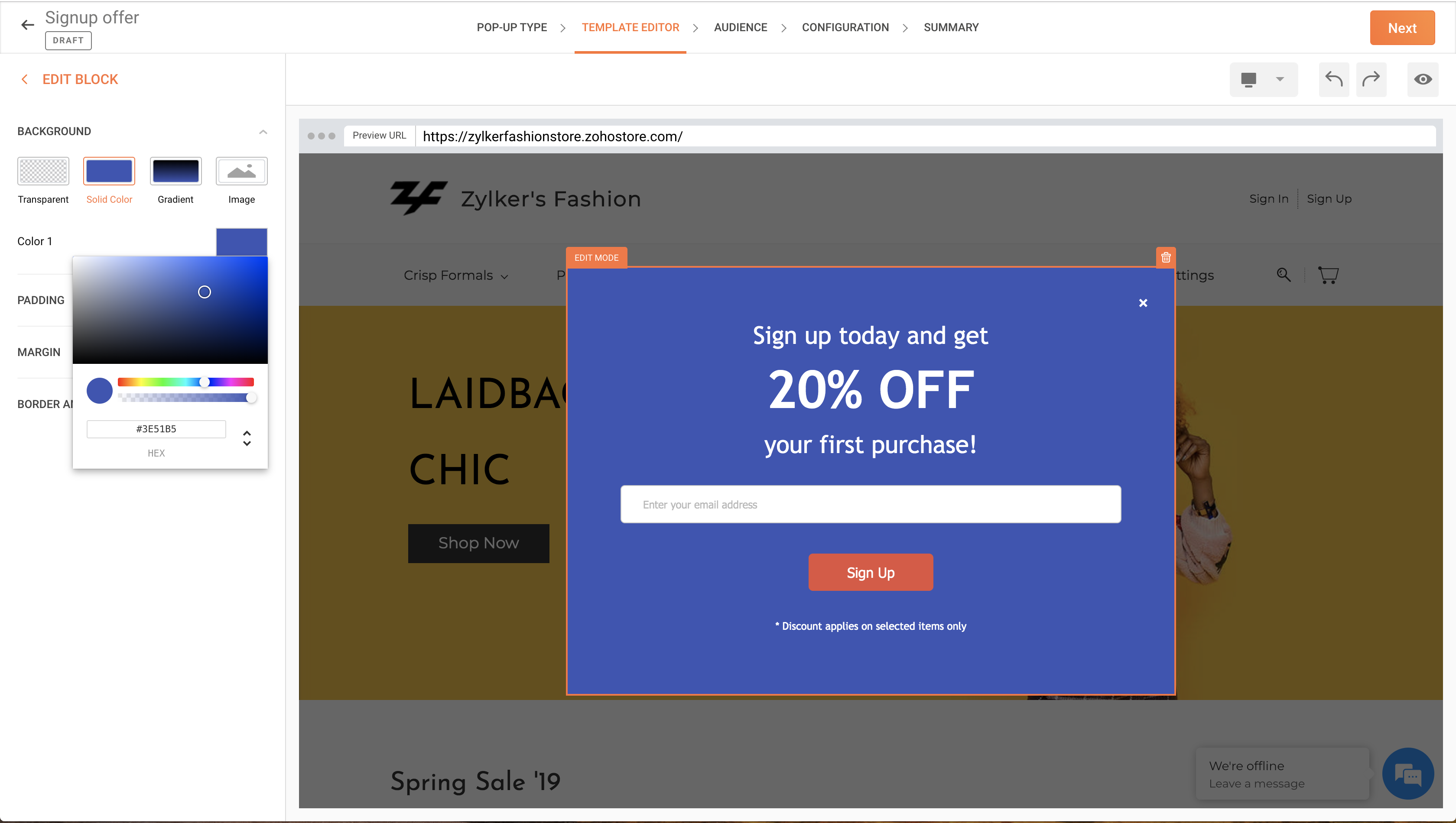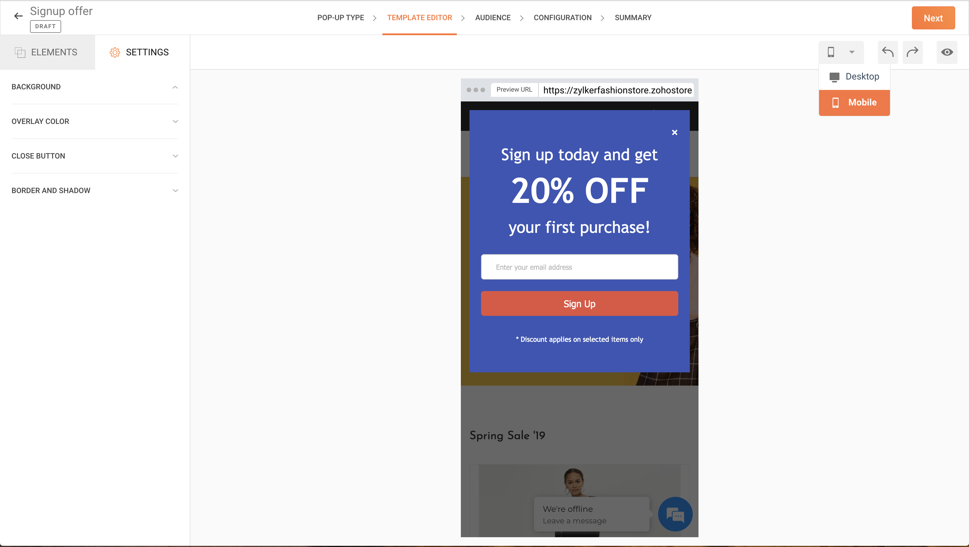 2. デスクトップおよびモバイルデバイスでのポップアップの表示方法を確認するには、プレビューアイコンを使用します。 デバイス。