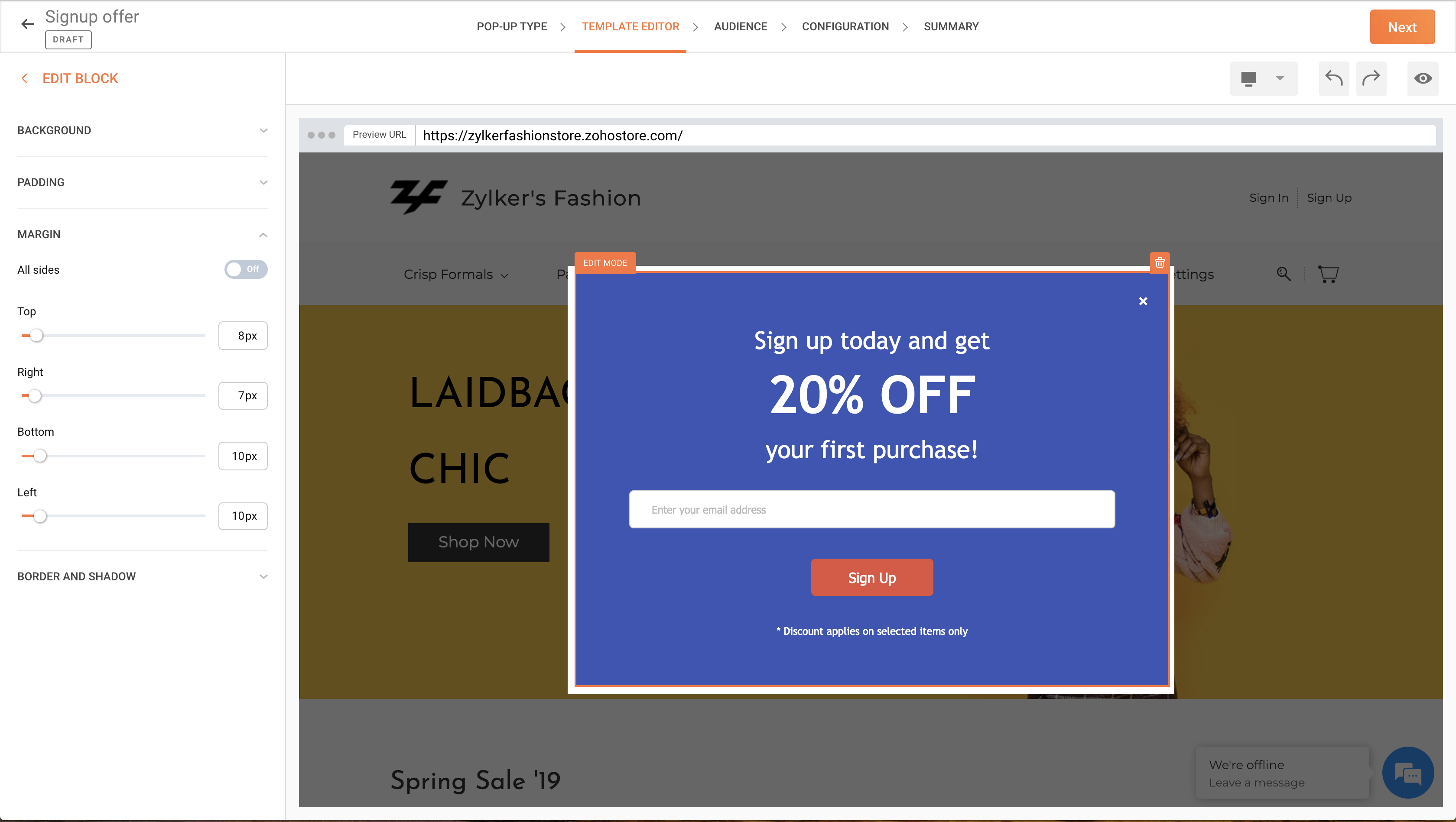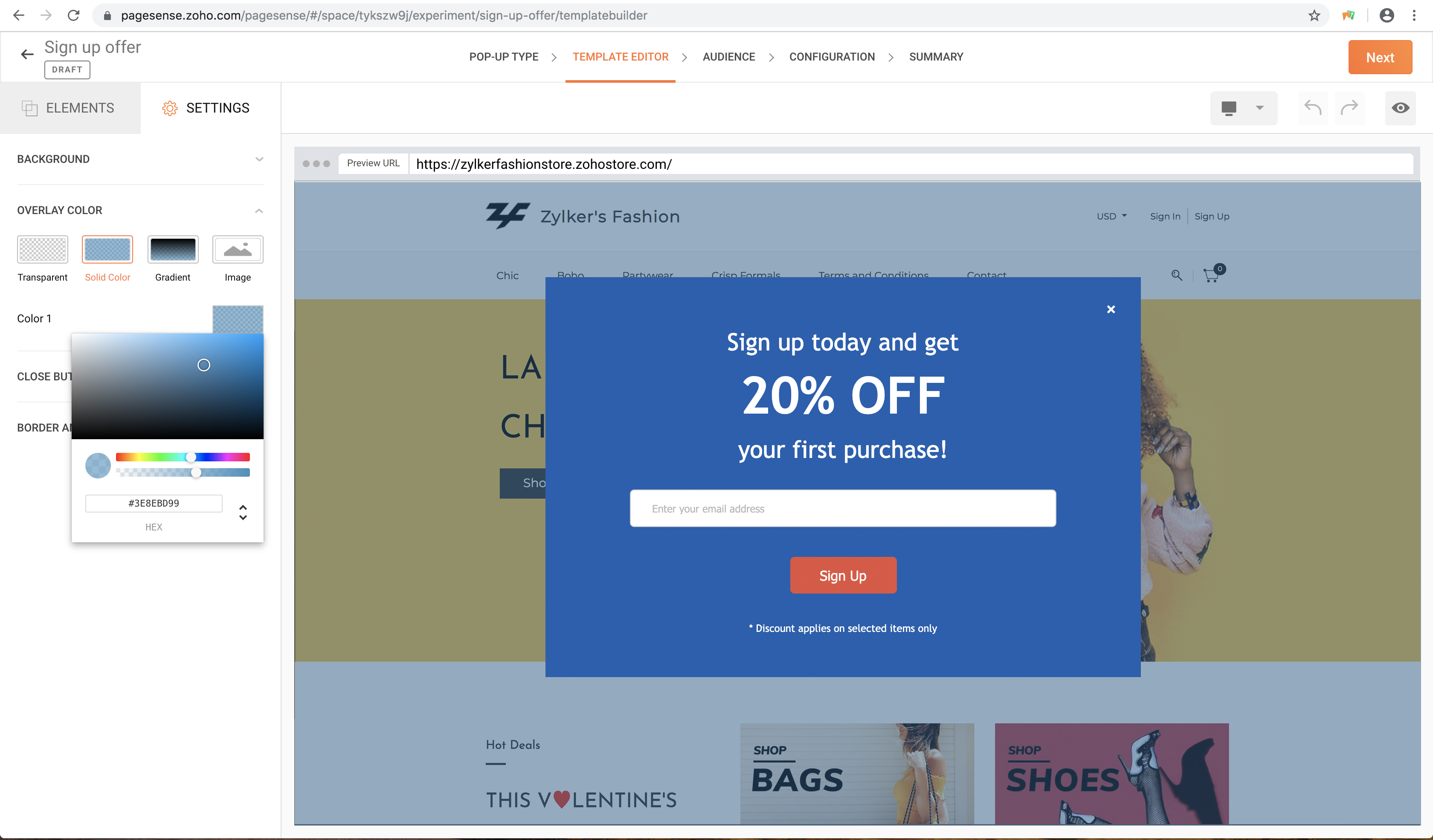 3. 次へをクリックして、ポップアップの対象設定に進んでください。
