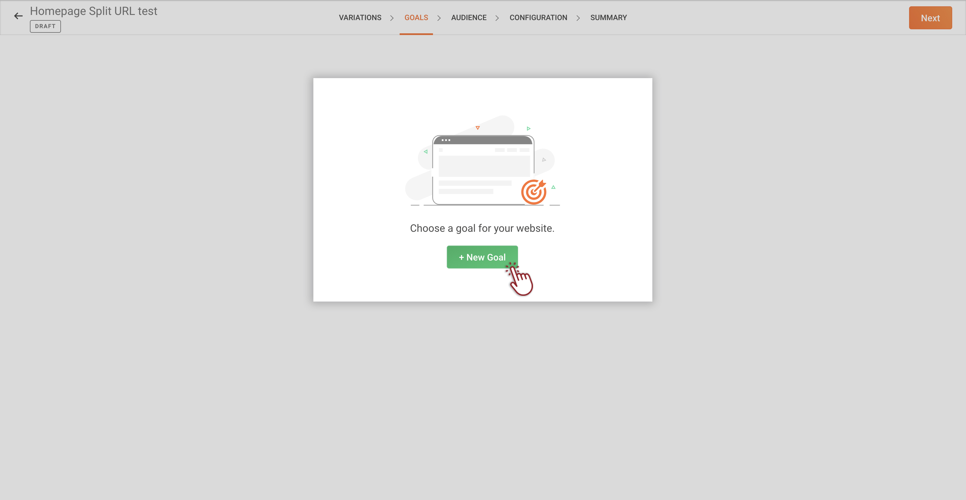 1. [目標]ページで、[+ 新しい目標]ボタンをクリックして、バリエーションページに新しい目標を追加します。