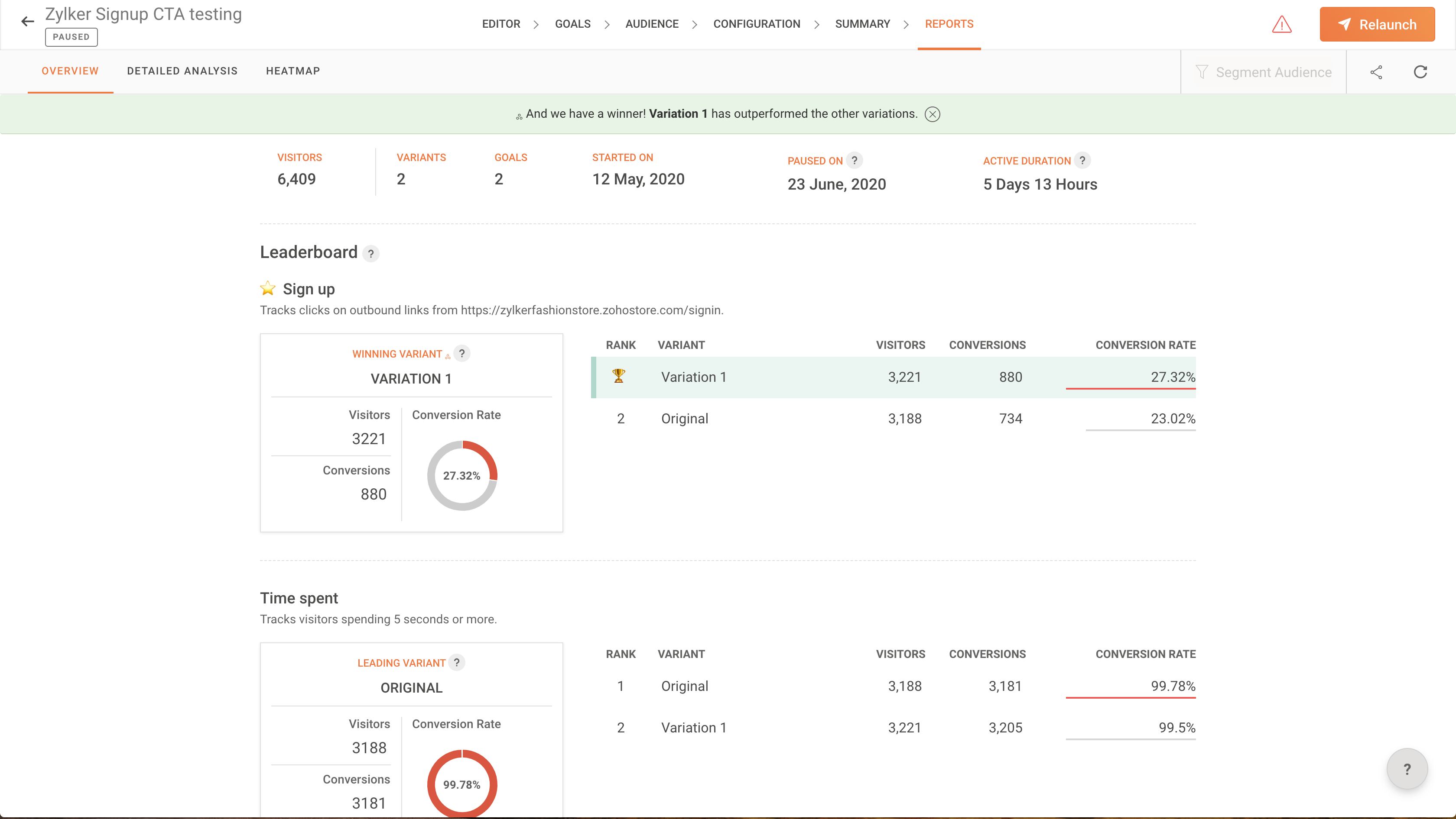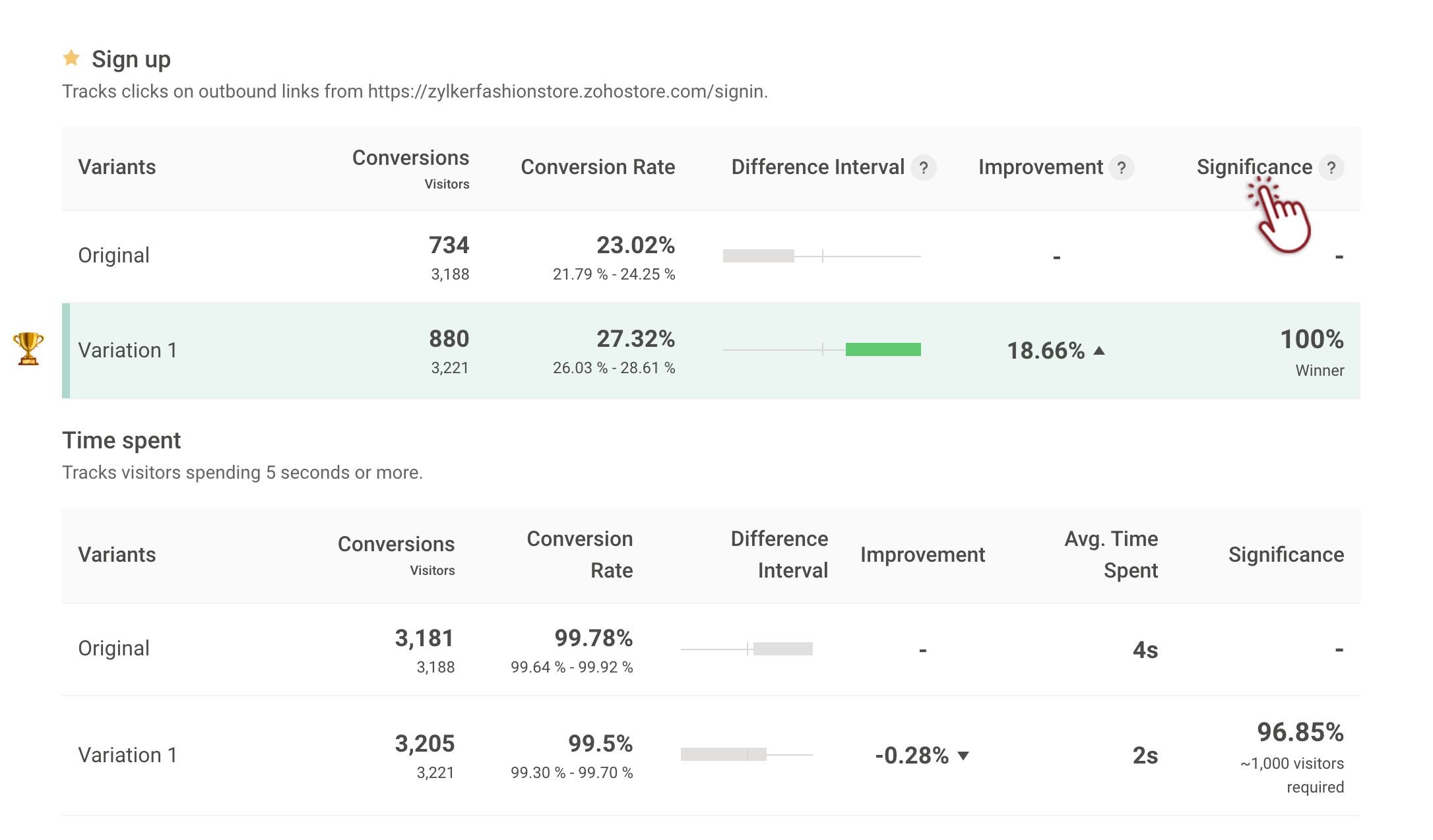 knowledge 差出人ヒートマップとA/Bテストレポートを組み合わせることで、バリエーションページでのコンバージョンを増やし、勝者を決定するための統計的有意性も高めることができます。
