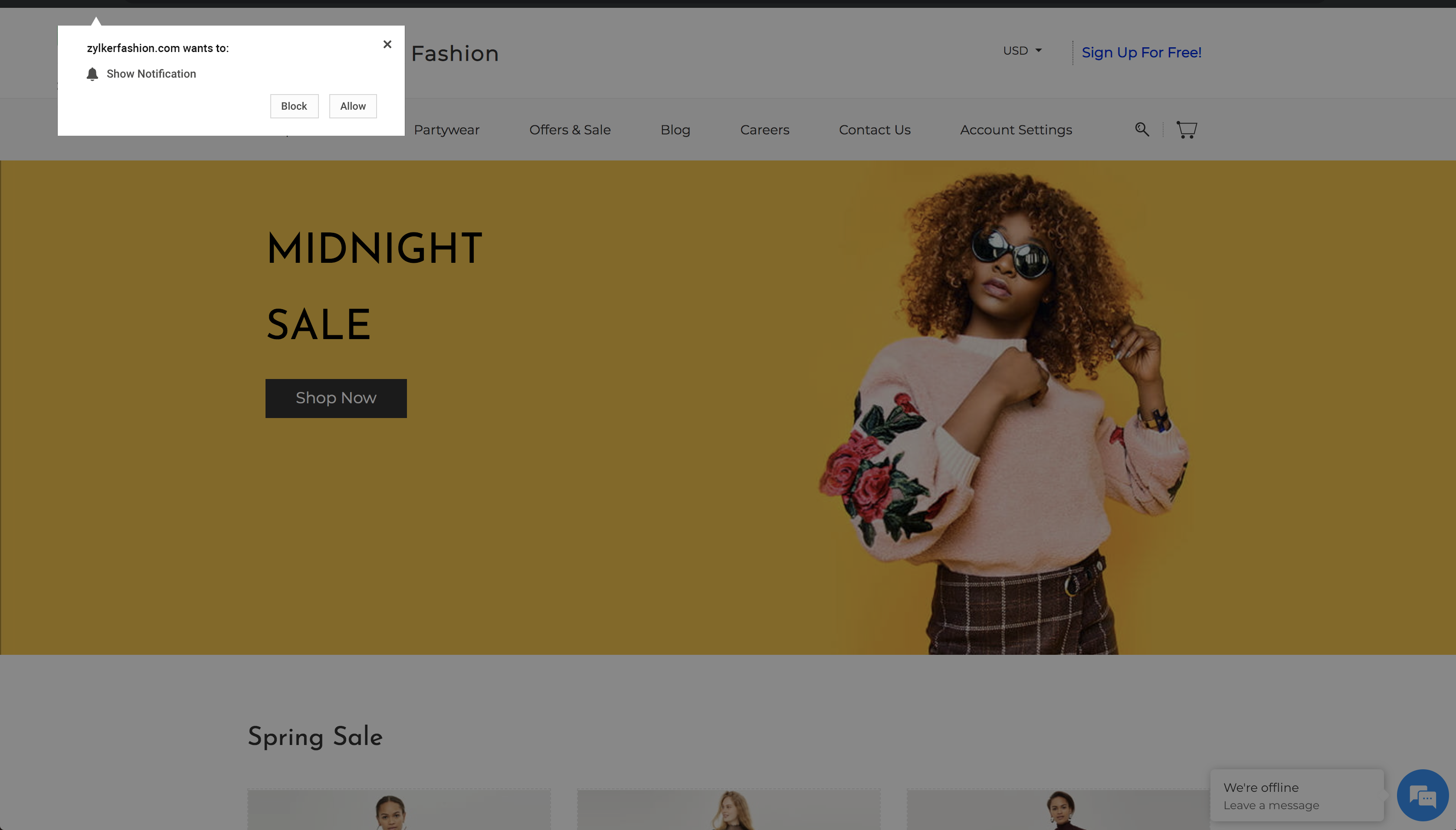 WPageSenseで2段階(またはカスタム)のオプトインを実装する場合、プッシュ通知を送信および購読するために、当社とのサブドメインを作成しますこのドメインから。例えば、選択する場合あなたのウェブサイトのURLはwww.zylkerfashion.com www.zylkerfashion.comおよびサブドメインはzylkerfashionですPageSenseのサブドメインはzylkerfashionになりますcdn.pagesense.io下の図に示されているように、この例では、zylkerfashion ウェブサイト上でオプトインを送信するメインドメインpagesense.ioのサブドメインになります。