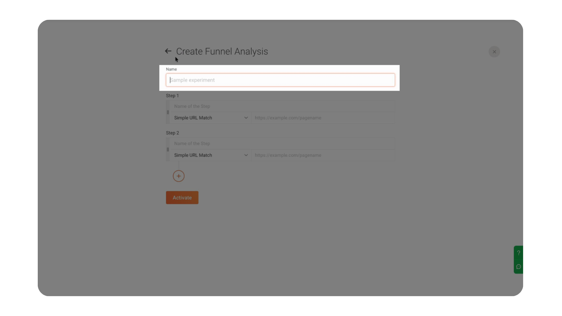 各ファネル実験の名前が表示され、どのユーザージャーニーをトラッキングしているかをすばやく識別できます。 - Status