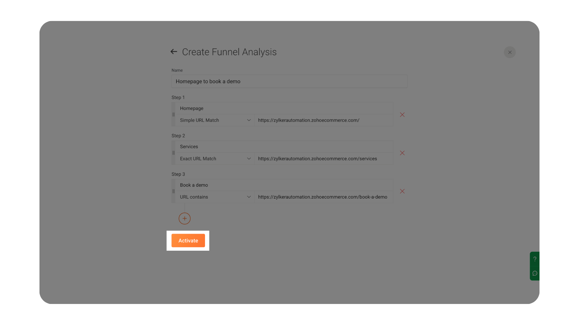 ファネルが現在実行中でデータを収集しているか、一時停止中かを示します。 - Steps