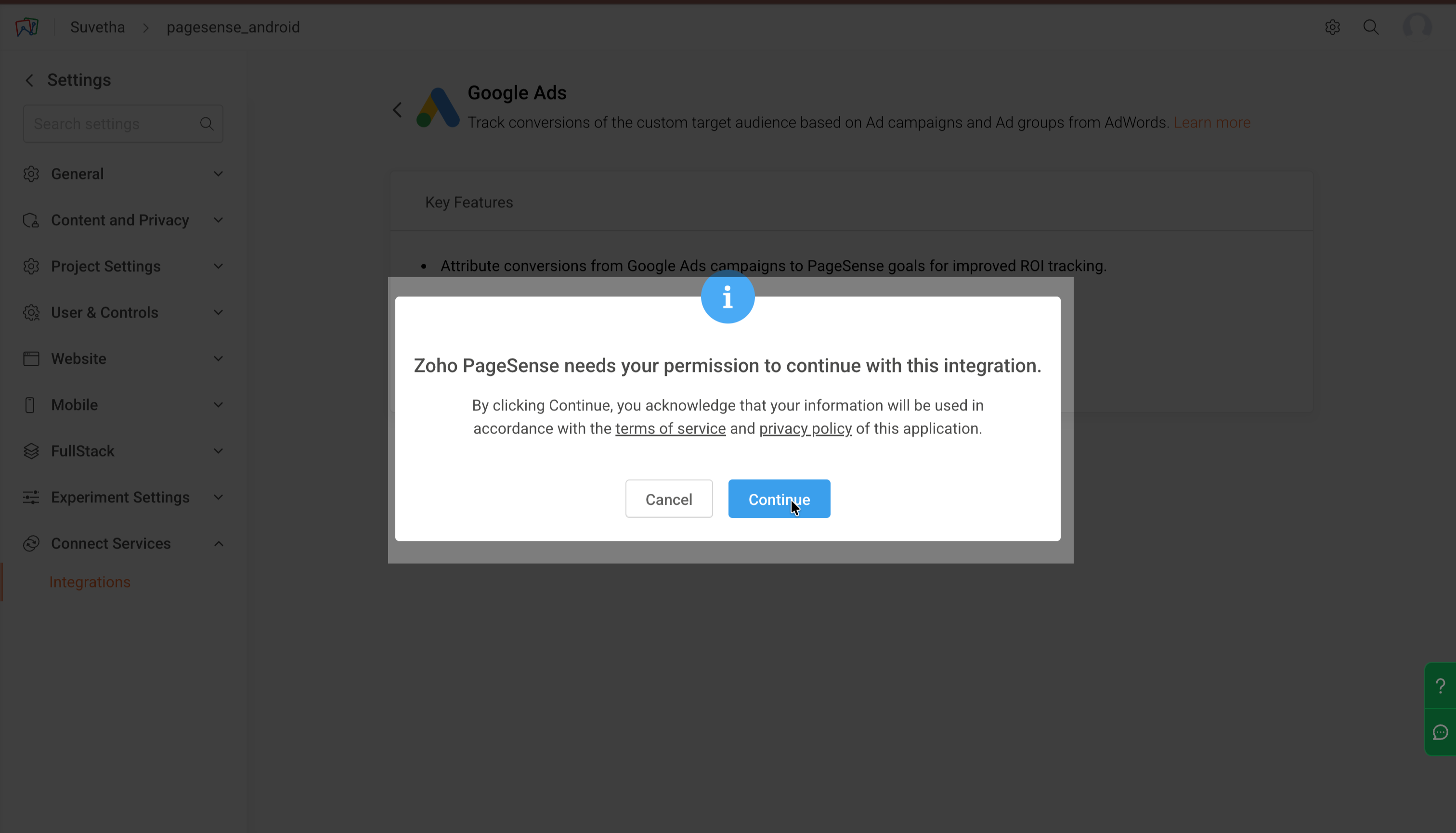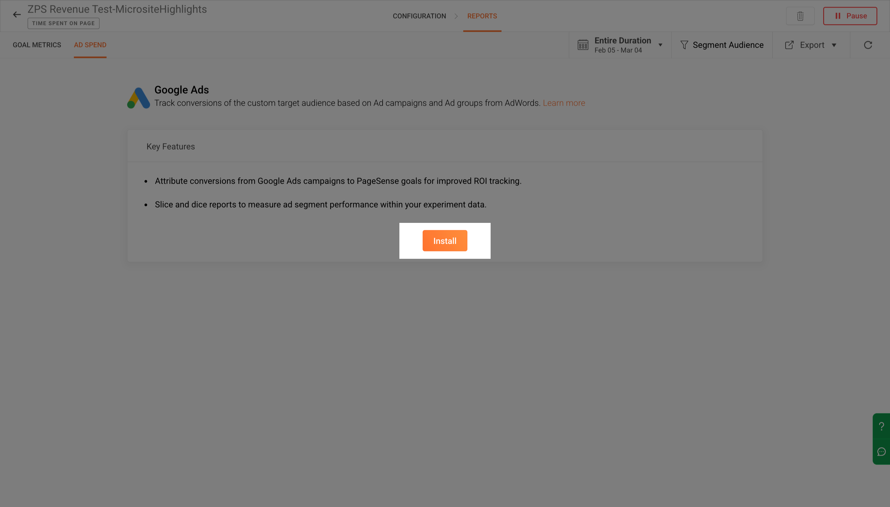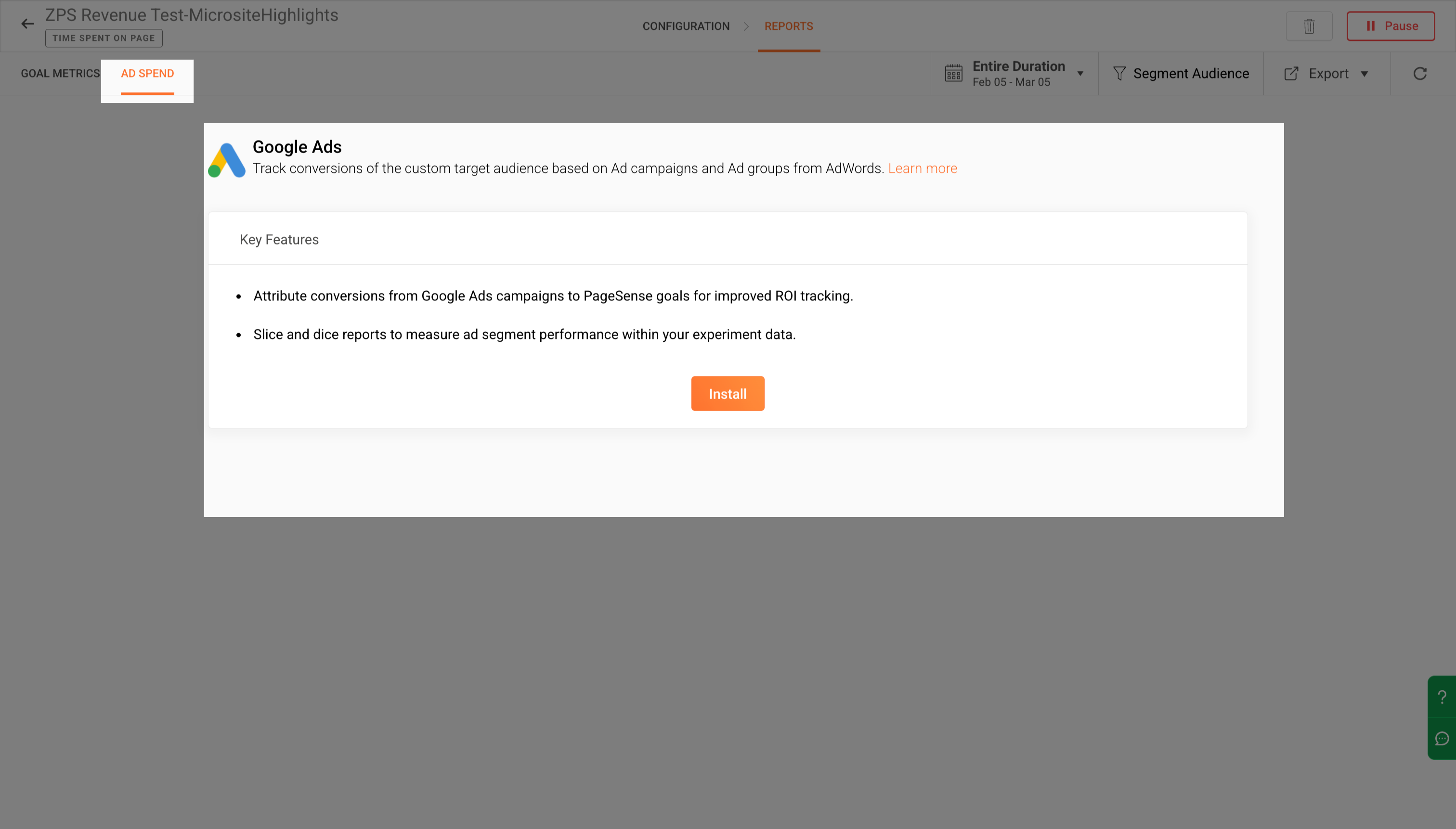 Google AdsのキャンペーンデータをPageSense内で活用できるコンバージョンインサイトに変換し、トラフィックだけでなく実際のROIを測定できるようにします。