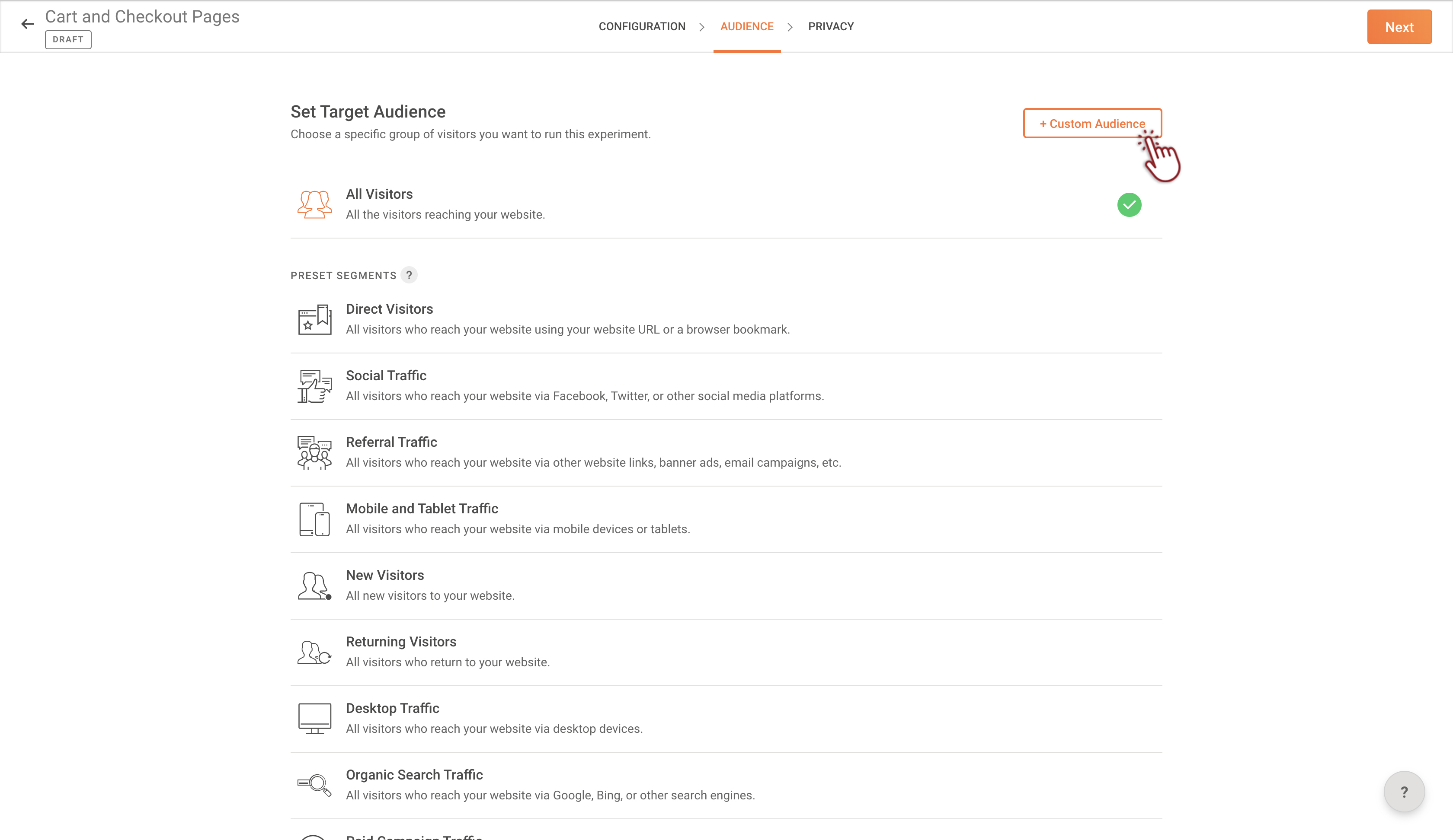 PageSenseでは、訪問者のデータ活動を選択して取得できます。特定のターゲットページやページグループに対して、詳細URLターゲティングオプションを使うことで、適切なURLパターンを選択できます。例えば、「URLパス」や「URLパラメーター」属性、比較方法では、「ends with」や「starts with」、「通常表現に一致」など多くの方法があります。これにより、データ取得を希望するページURLを正確に照合できます。さらに、URLターゲティングを利用すれば、特定のウェブ ページを除外し、追跡やセッション行動の表示対象外とすることも可能です。