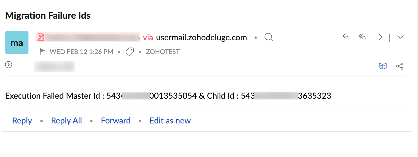 実行失敗 Master Id : ' + uniqueemailid + ' & Child Id : ' + recid + '---- ステータス : ' + ステータス + '