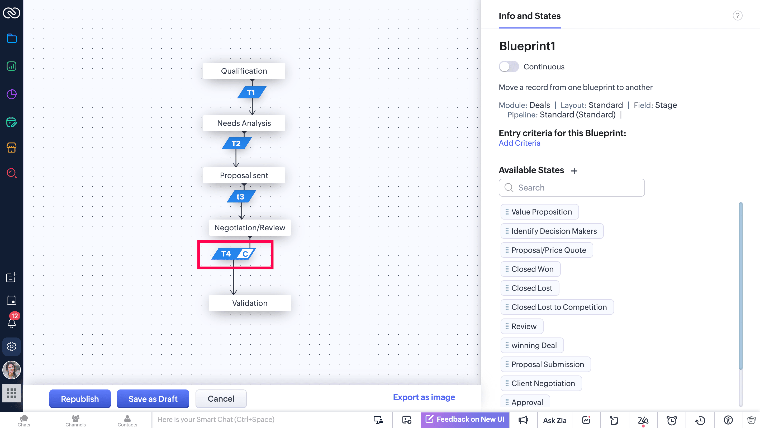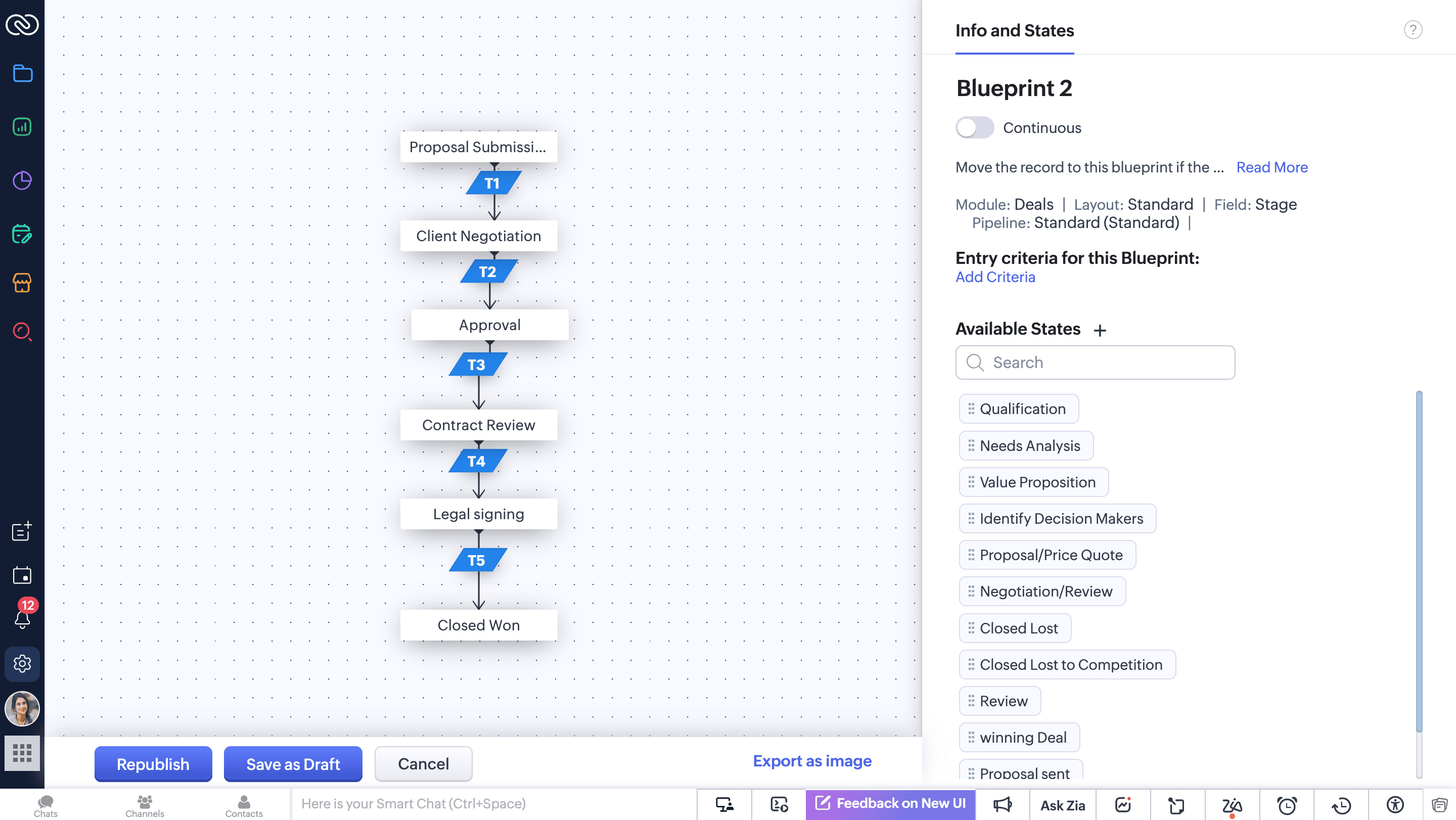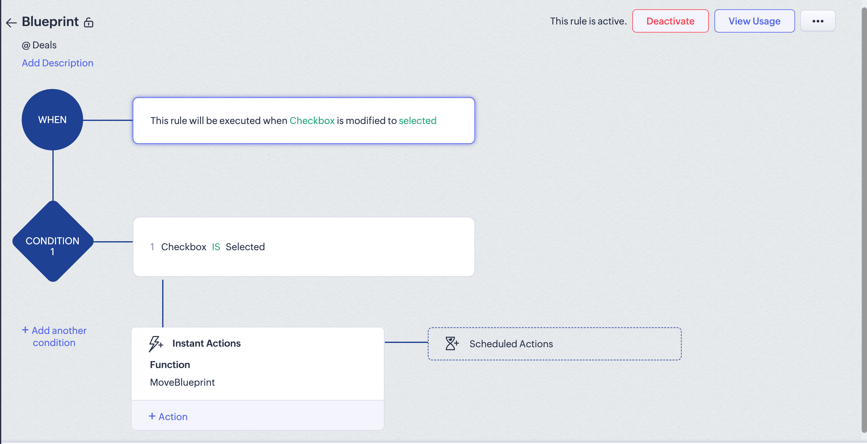 Zoho CRM ユーザーは、データを一括であるブループリントから別のブループリントに自動的に移行したい場合があります。しかし、Zoho CRM では初期設定でこのオプションは用意されていません。
