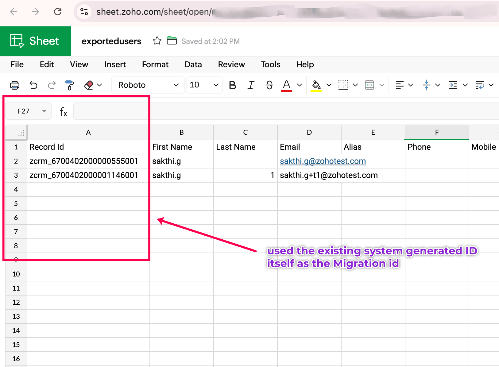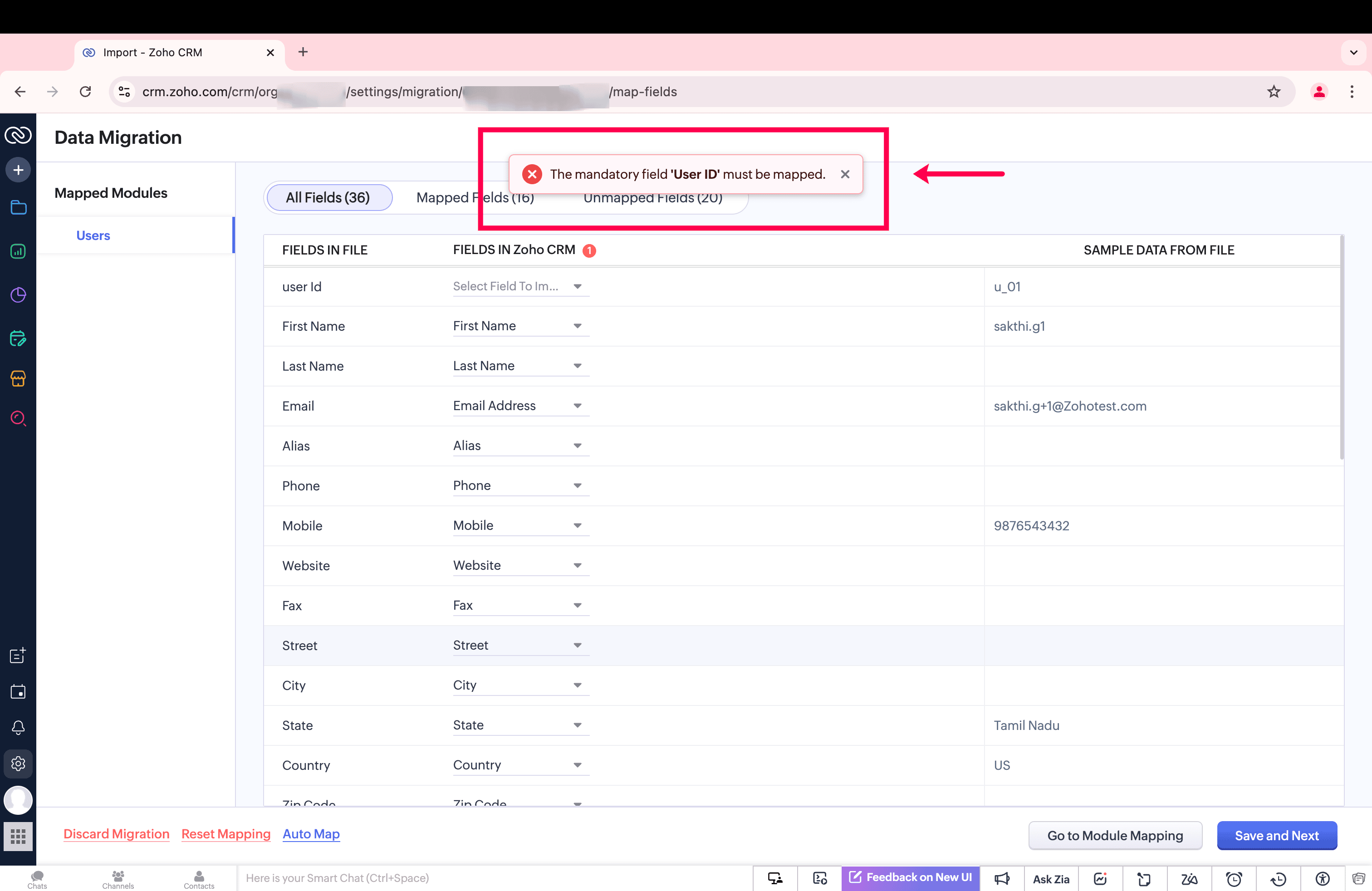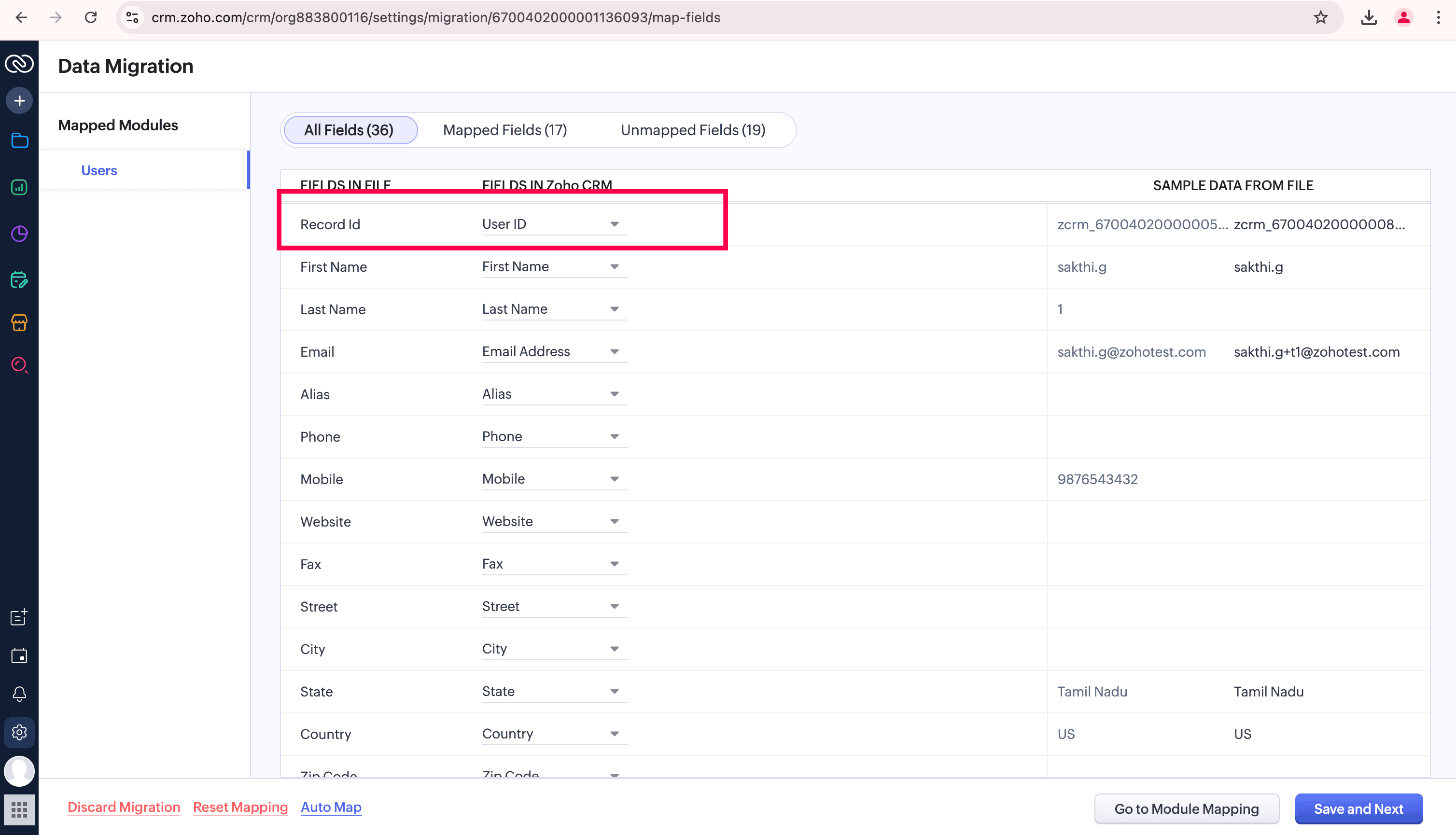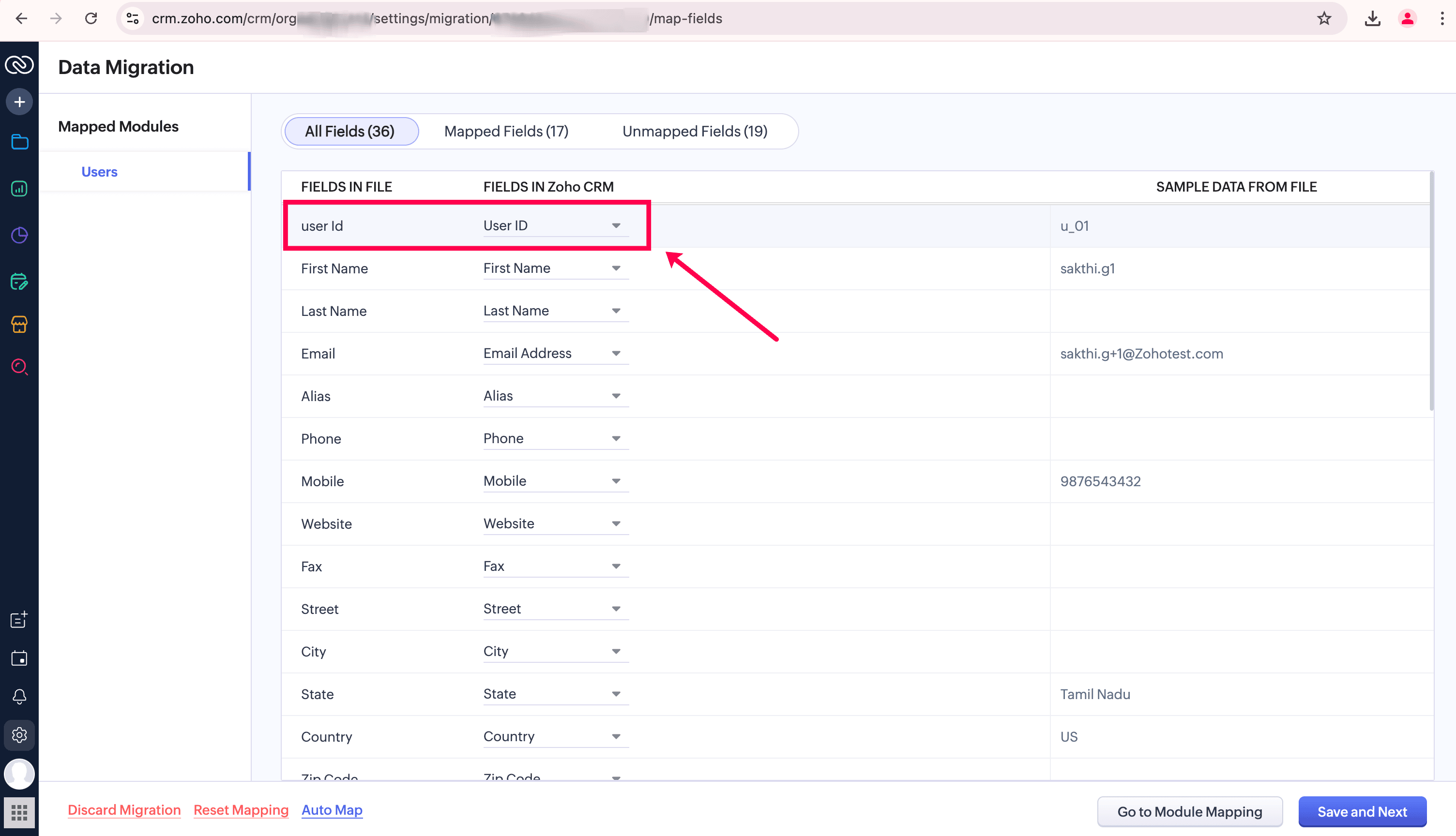 このためには、Zoho CRMで各ユーザーのMigration IDが必要です。この一意の識別子により、データ migration中にデータが各ユーザーに正しく紐付けられます。