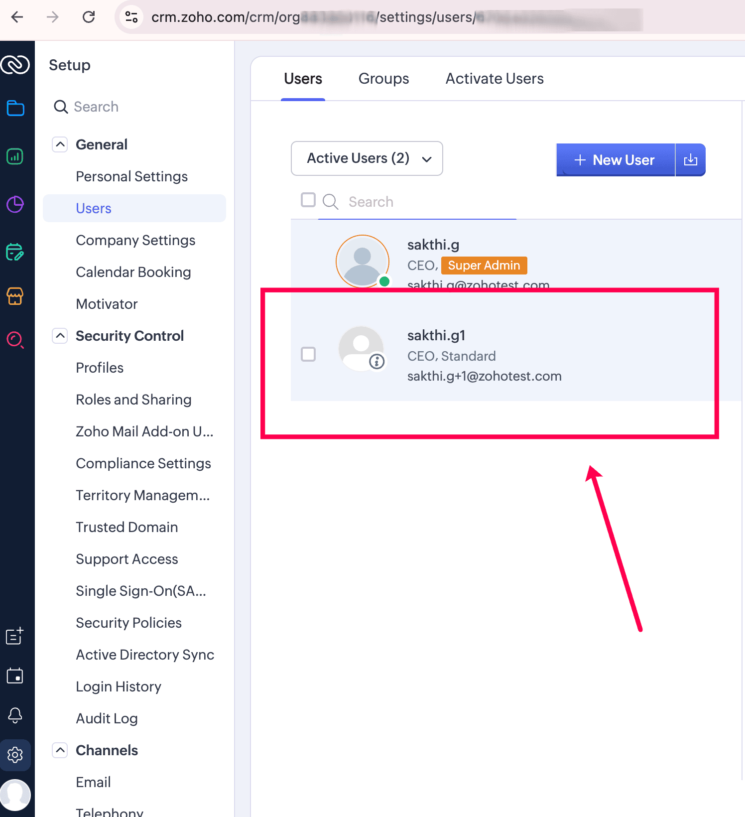 2. 残りの2ユーザーはZoho CRM内で無効ユーザーとして追加されます。