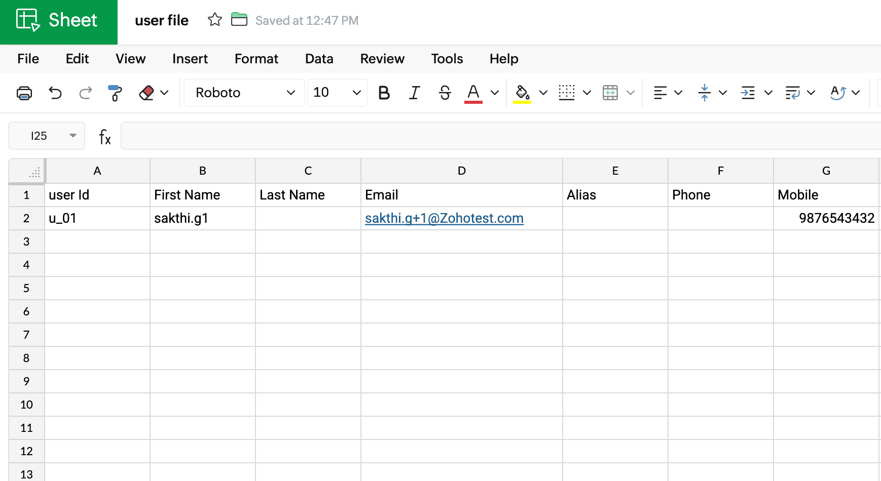 1. 名前、メール、電話番号などの関連するユーザーの詳細を含むファイルを準備してください。