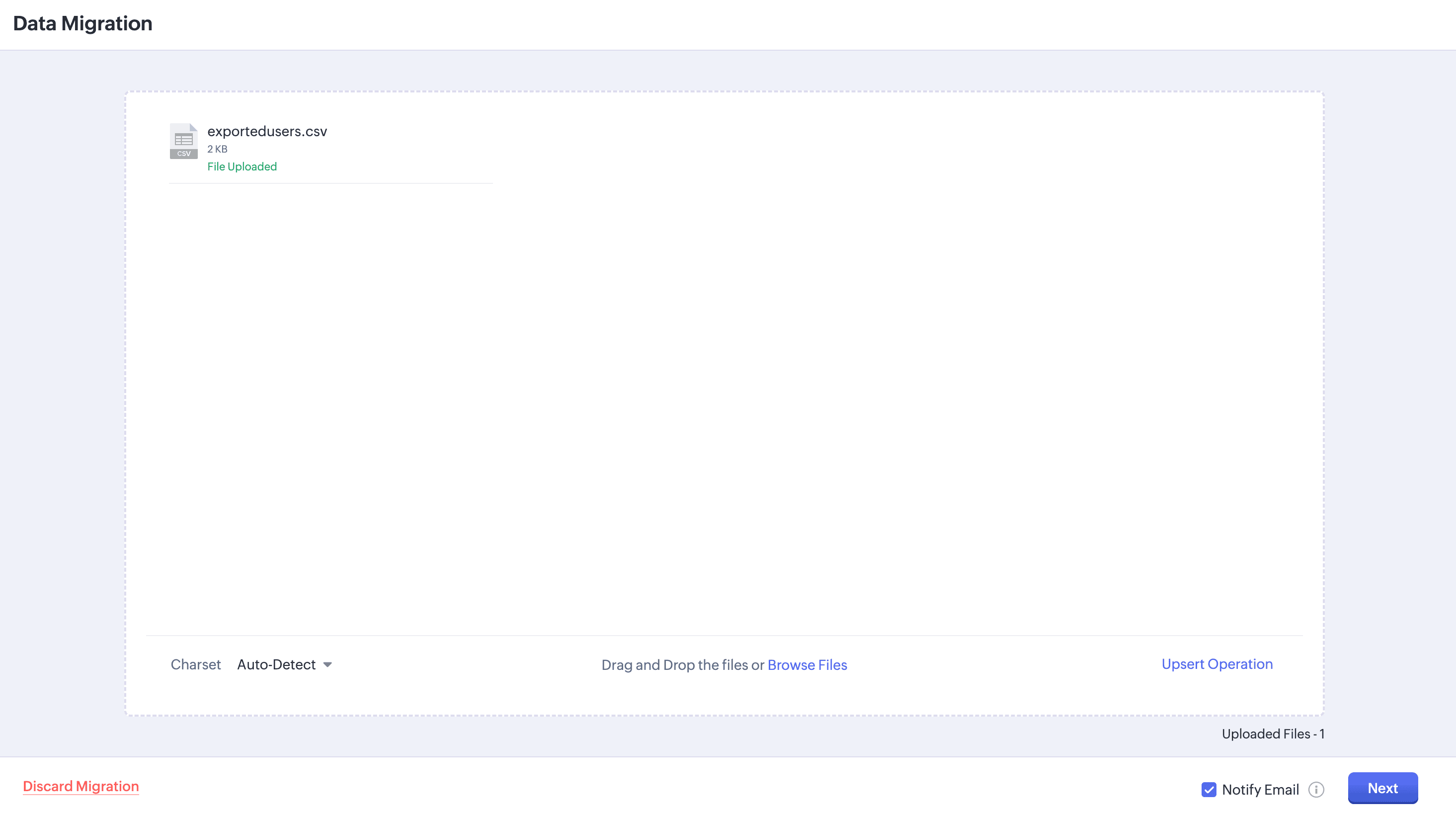 このプロセスでは、新しいユーザーデータは作成されません。移行は既存ユーザーのメールアドレスで照合し、各照合済みユーザーに指定されたMigration IDを割り当てるだけです。