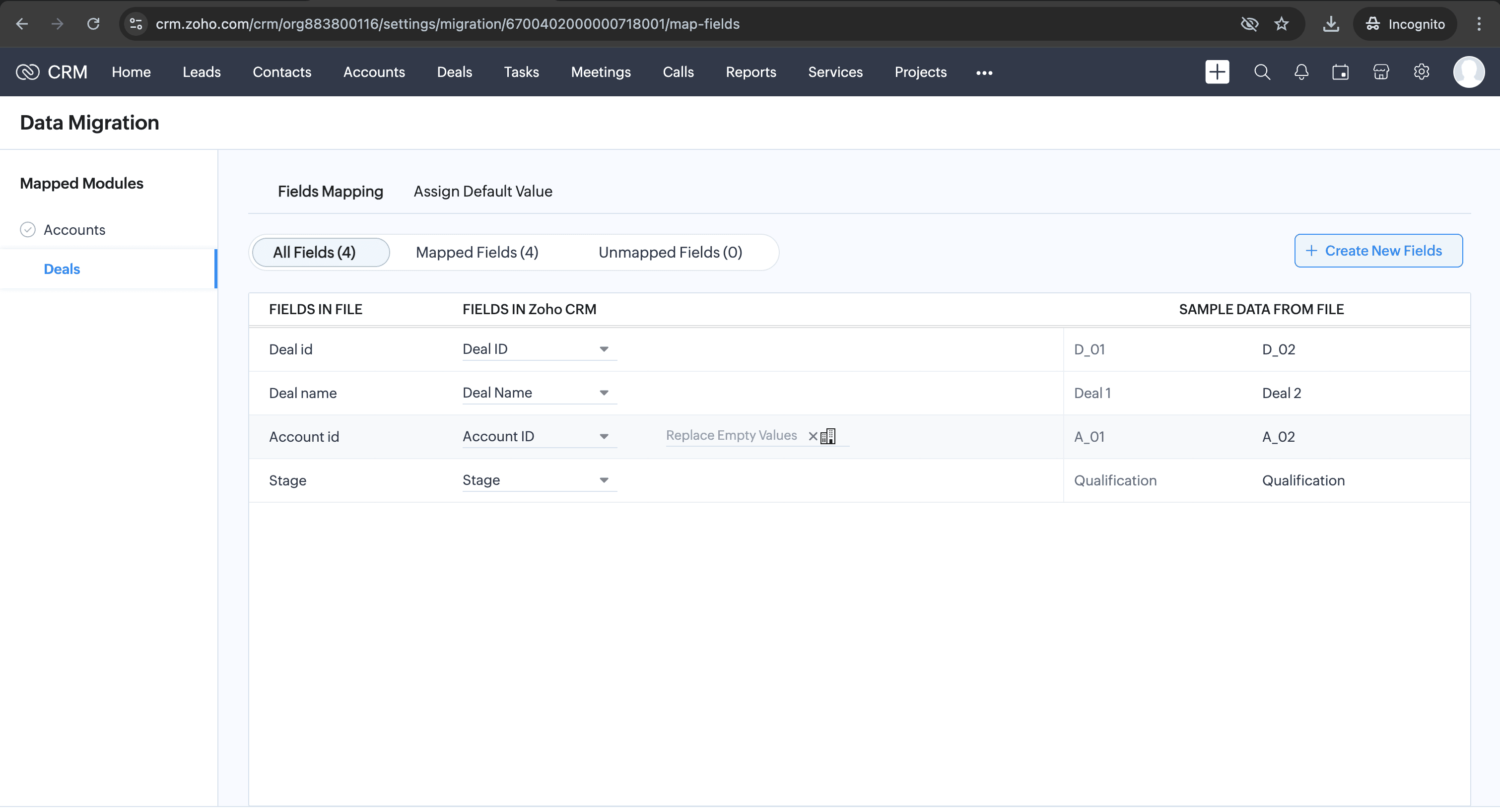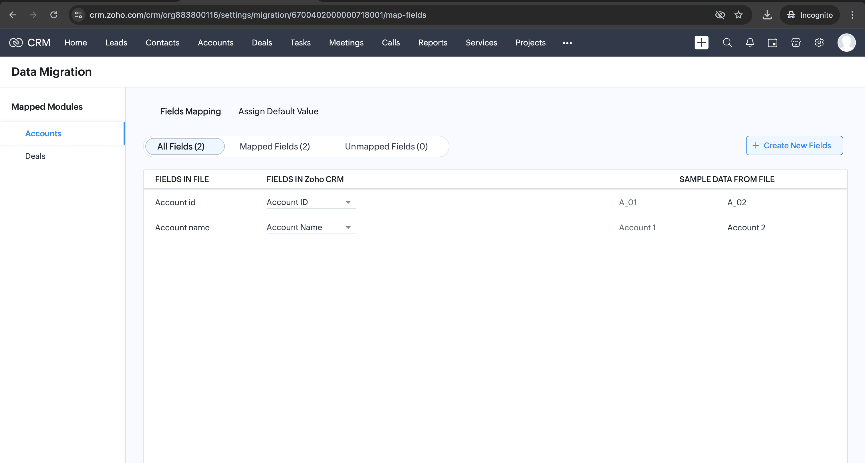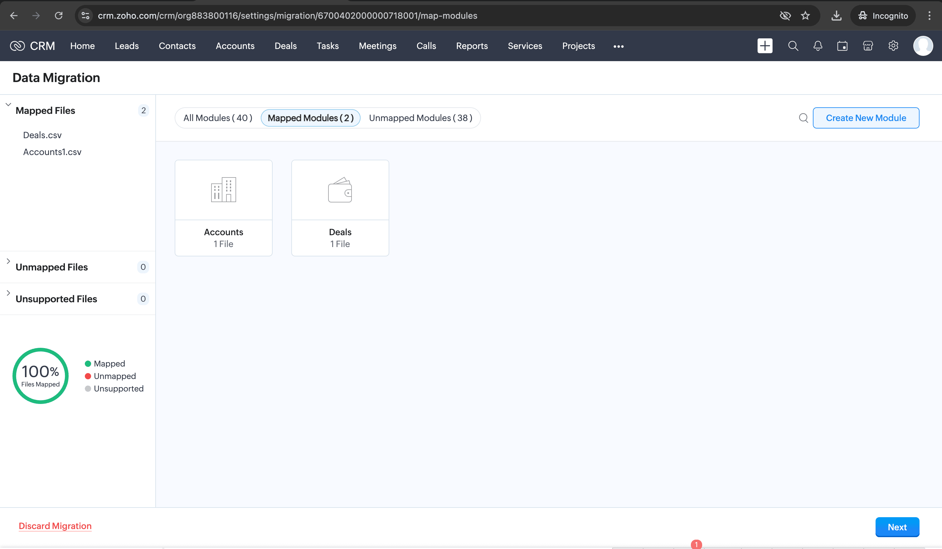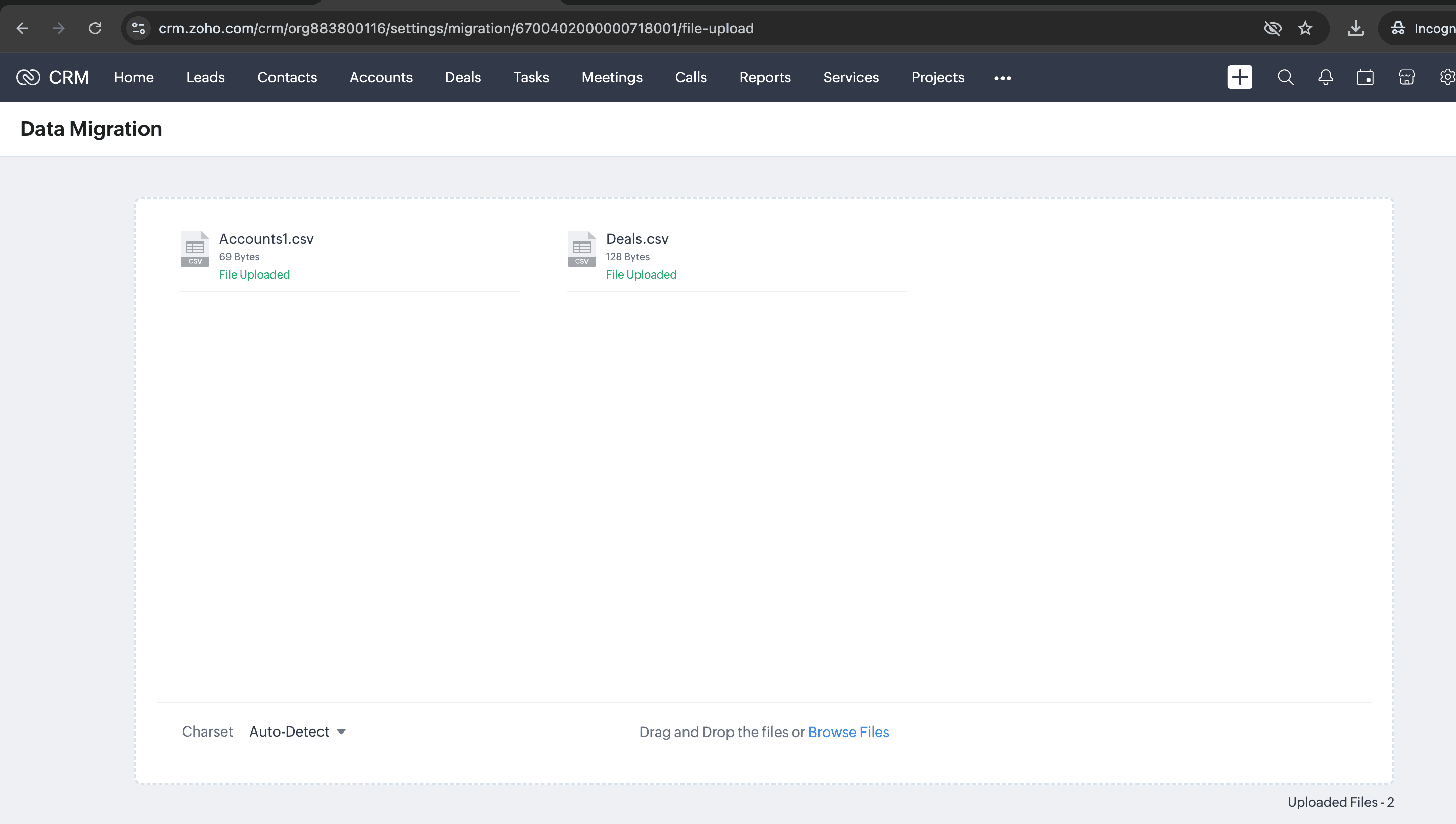 これでデータ移行に必要なすべてのファイルの準備が整いましたので、Zoho CRMのデータ管理内にあるMigration Wizardを使って移行を進めることができます。