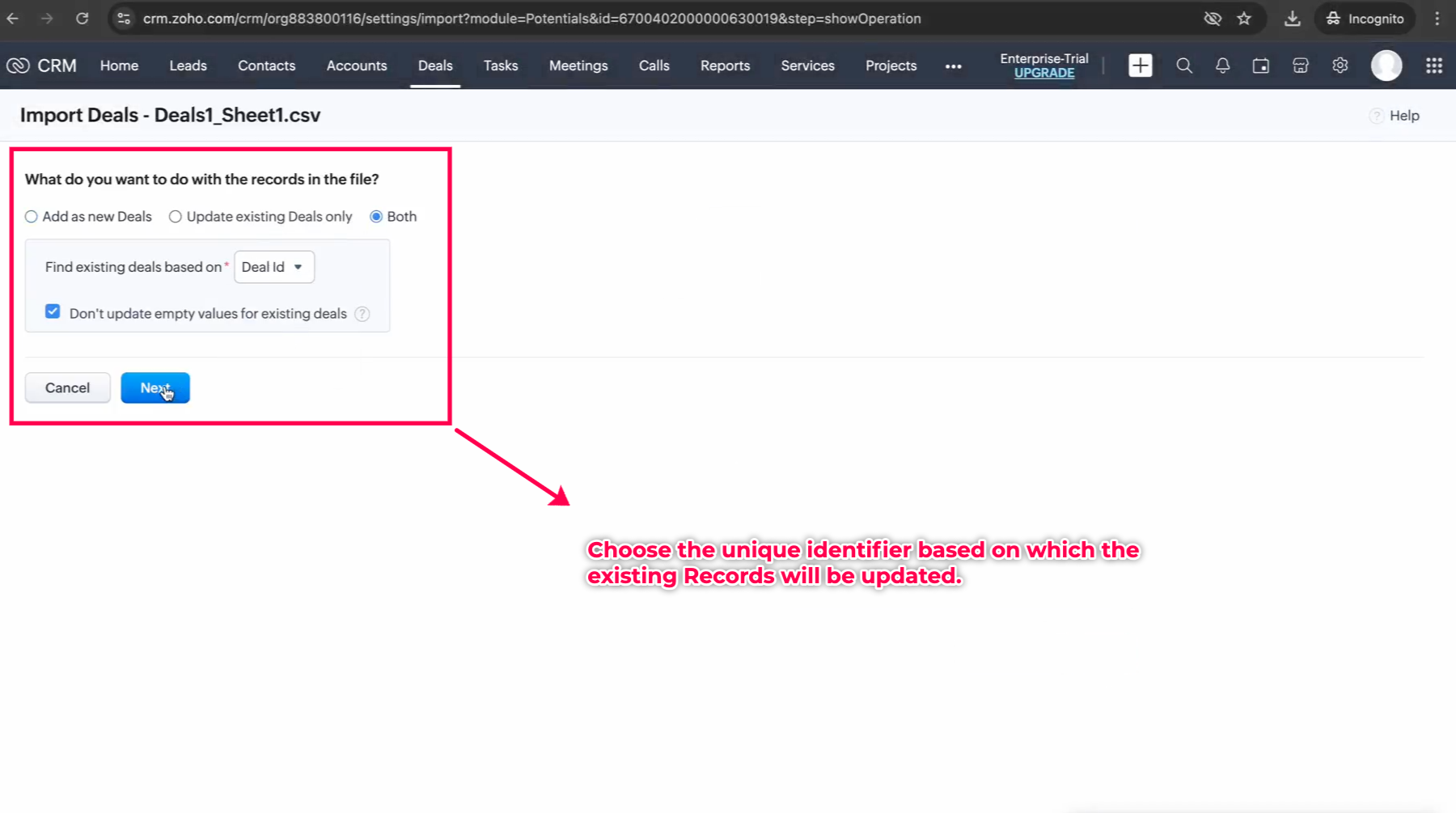 上記の方法を使用する場合、追加できるのは新規データのみです。すでにアカウントデータがシステムにあり、商談のみをインポートしたい場合は、別の方法(タブレベルインポート)をご利用ください。