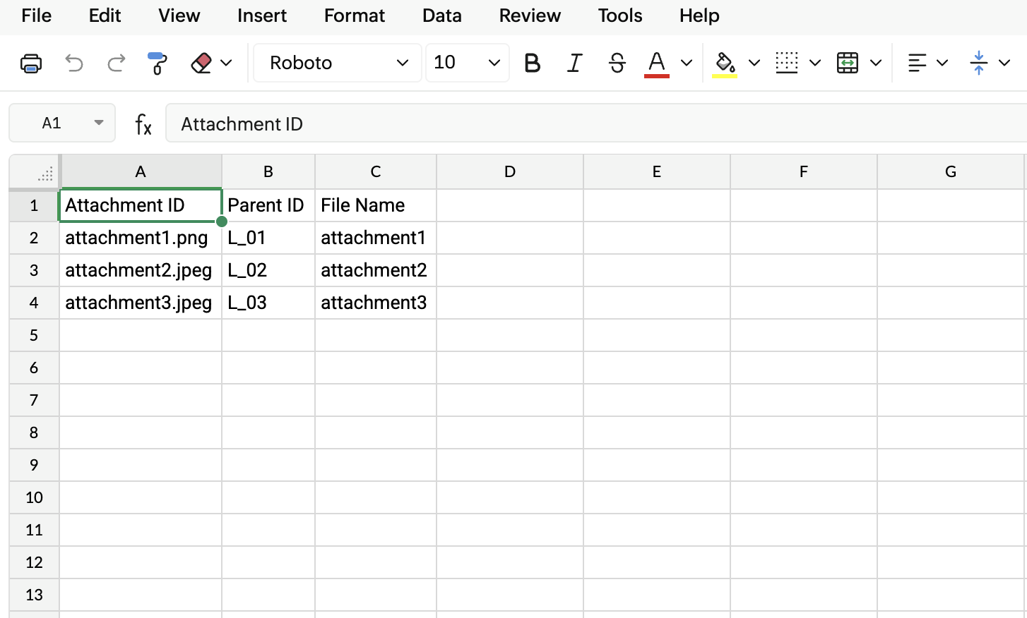 1. 添付ファイルはCSV形式である必要があります。