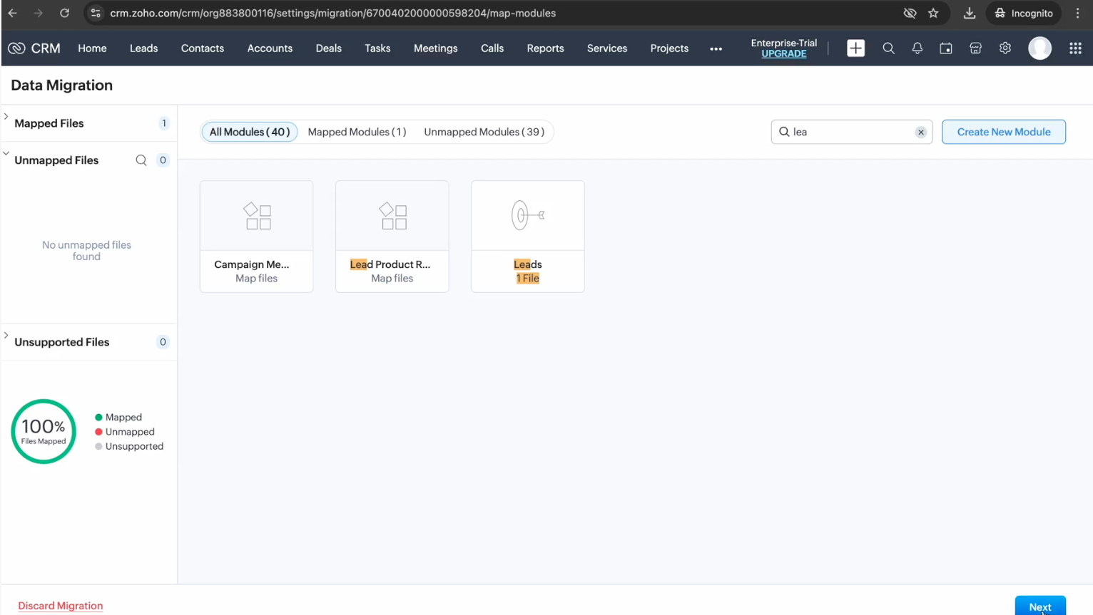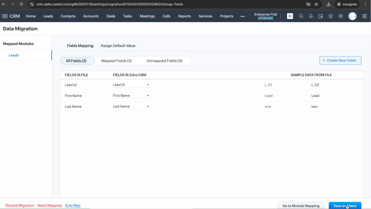 3. タブ Mapping で、見込み客ファイルをData Migration Wizardの見込み客タブにマッピングします。