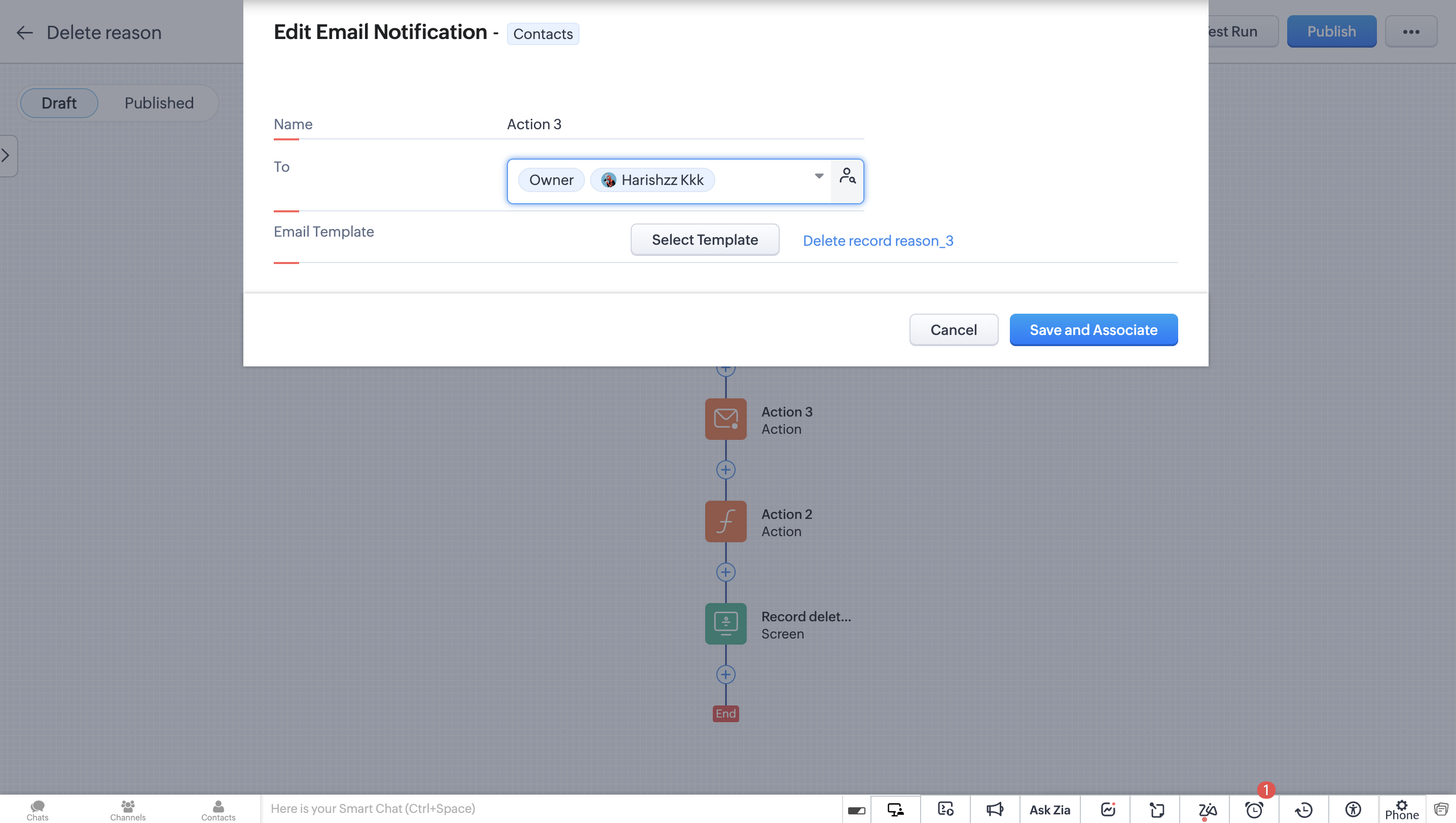 ユーザーは、Zoho CRMでデータを削除する前に理由を入力する必要があります。