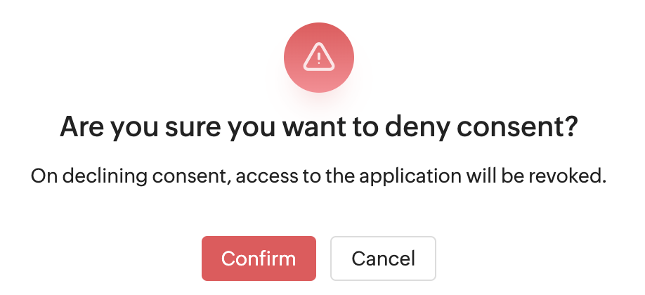 同意を拒否した従業員には、今後Zoho Peopleにアクセスできなくなる旨の警告メッセージが表示されます。一度同意を拒否しても、期限前であれば[同意する]に変更できます。