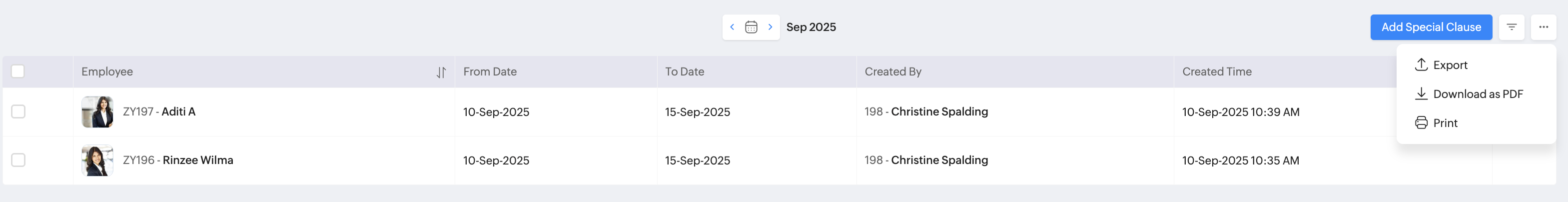 特別条項データの表示、追加、編集を行うことができるのは管理者だけです。
