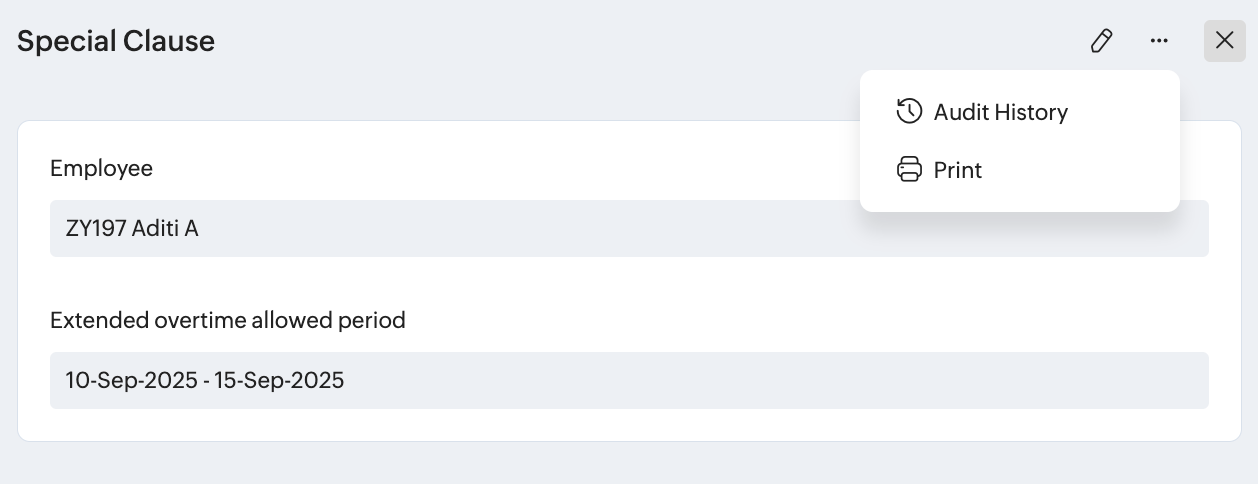 管理者は、特別条項を追加できます。特別条項は、対象の従業員に対して時間外労働の延長を法的に許可します。特別条項を追加するには、以下の手順を実施します。