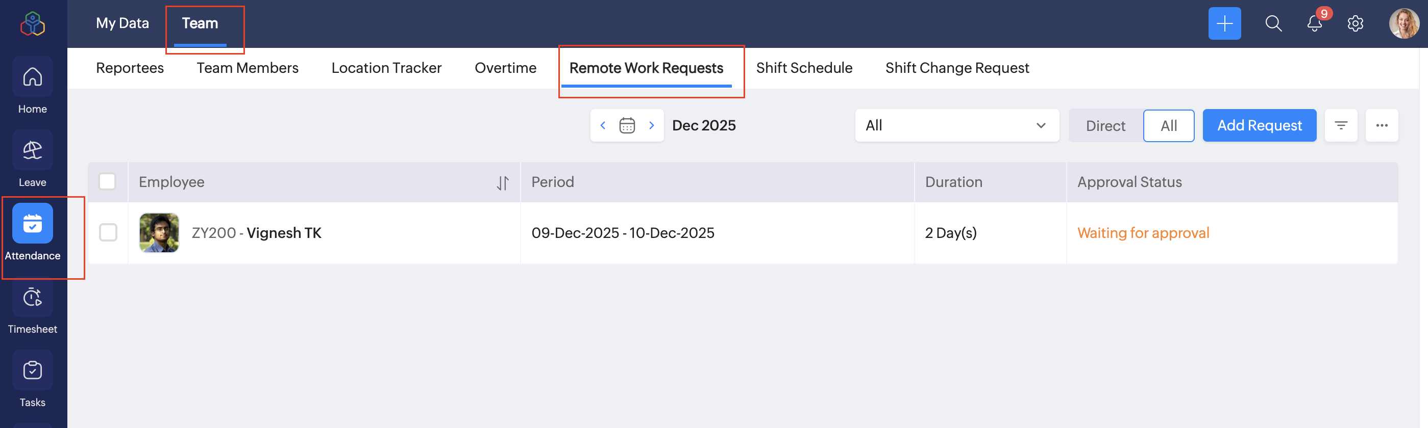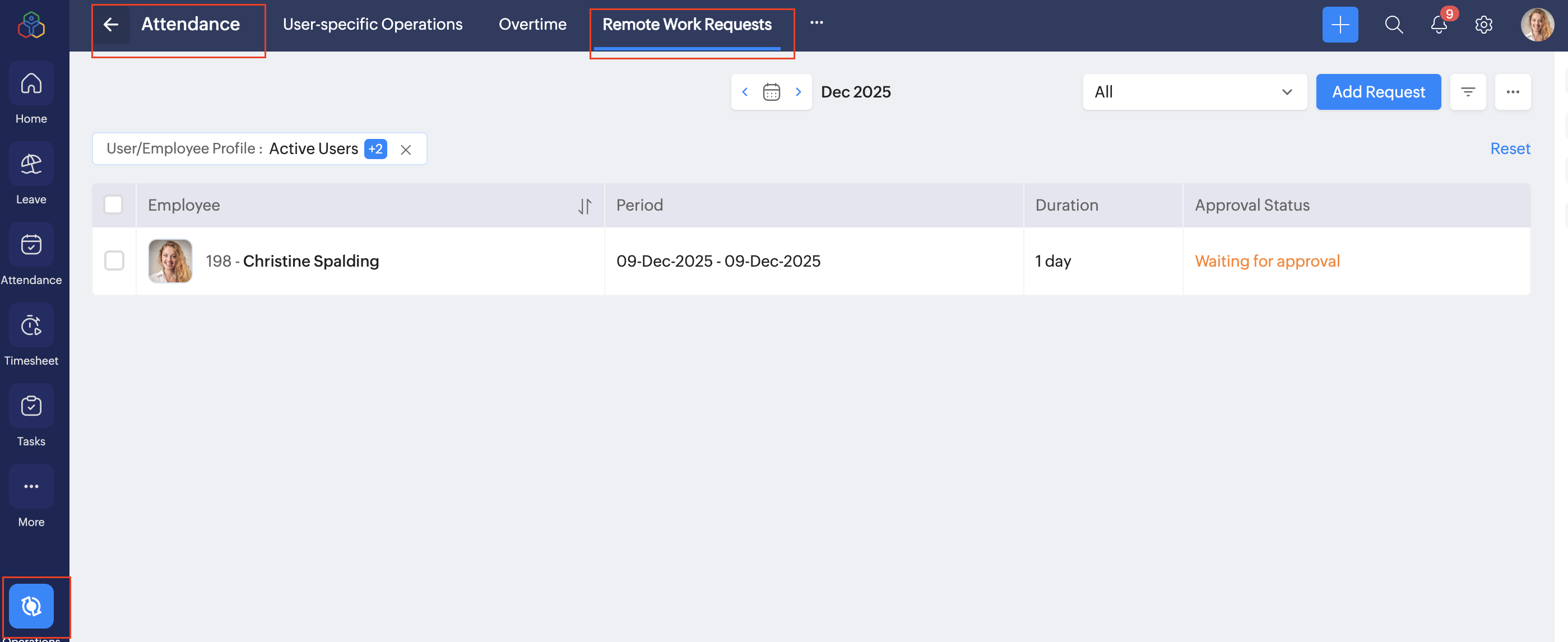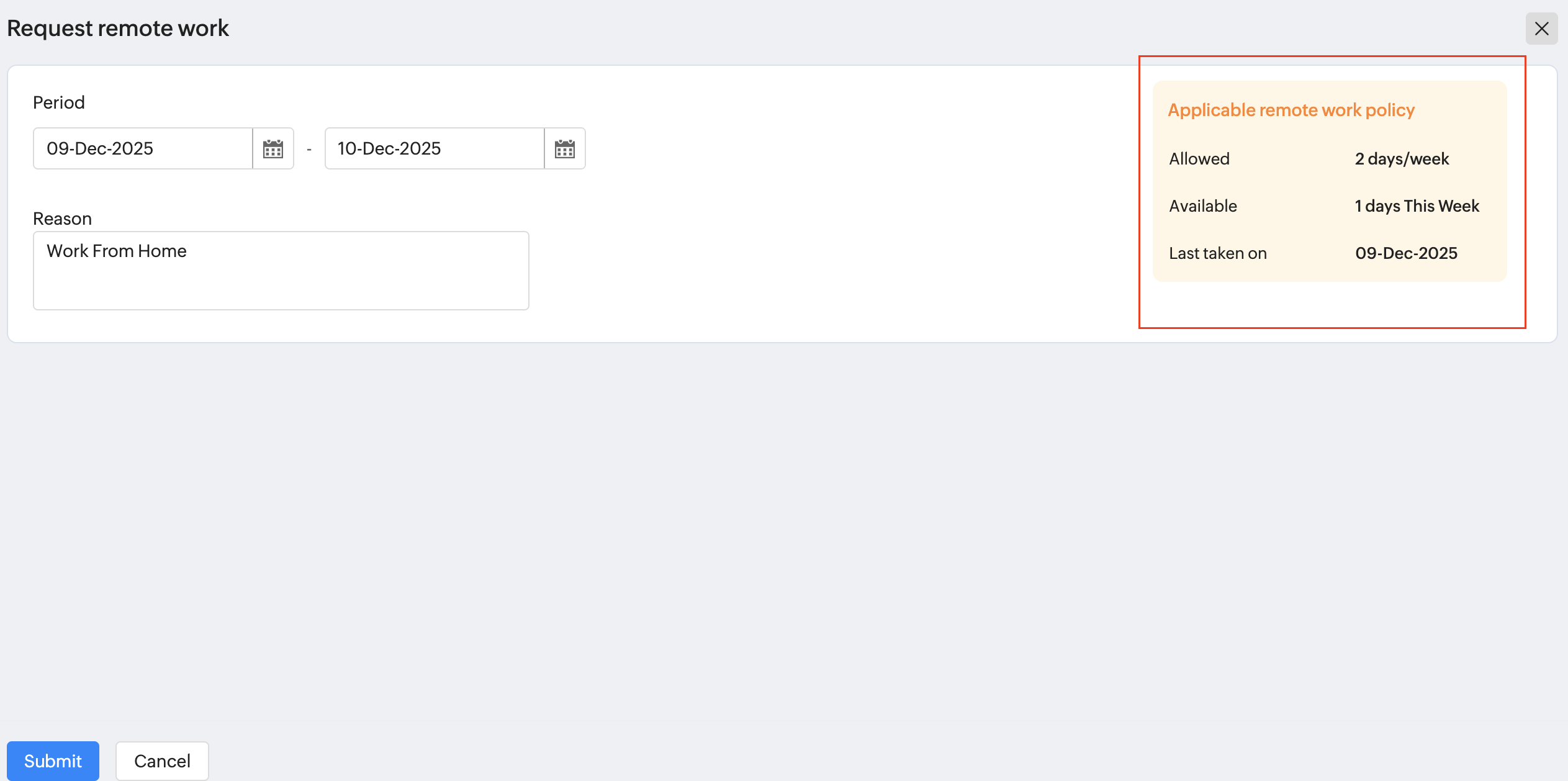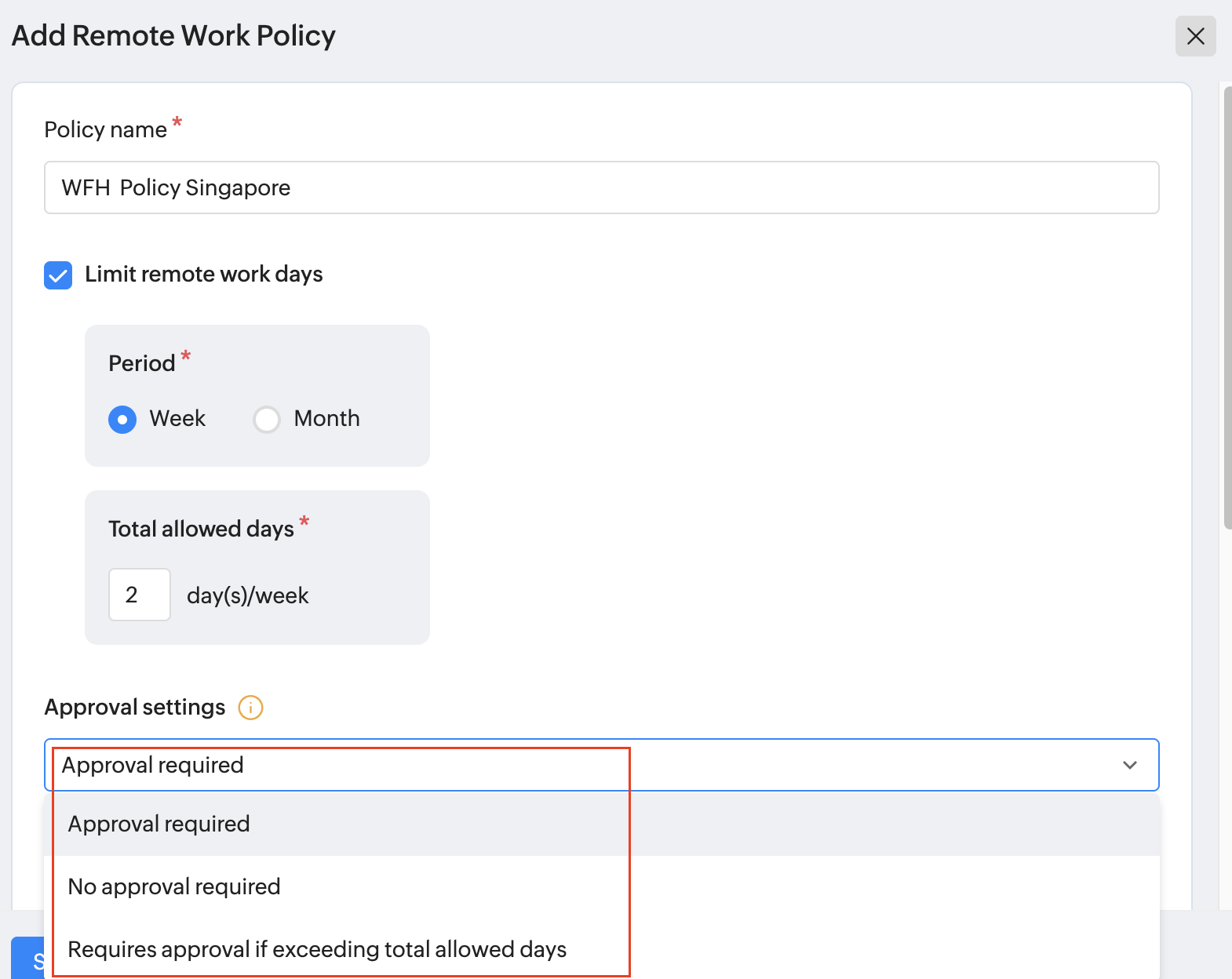 Zoho People でリモートワーク規定を設定する前に、Office In と Remote In 設定が[勤怠方法]で有効になっていることを確認してください。詳細については、勤怠方法を有効にするを参照してください。