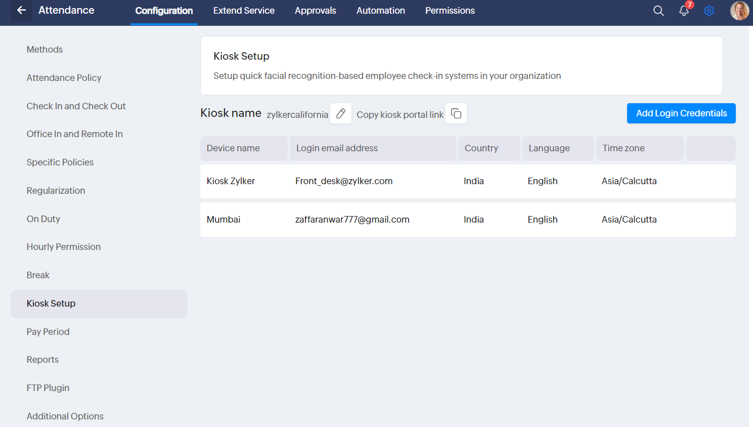 Zoho People Kioskの詳しい設定については、こちらをクリックしてください(英文)。