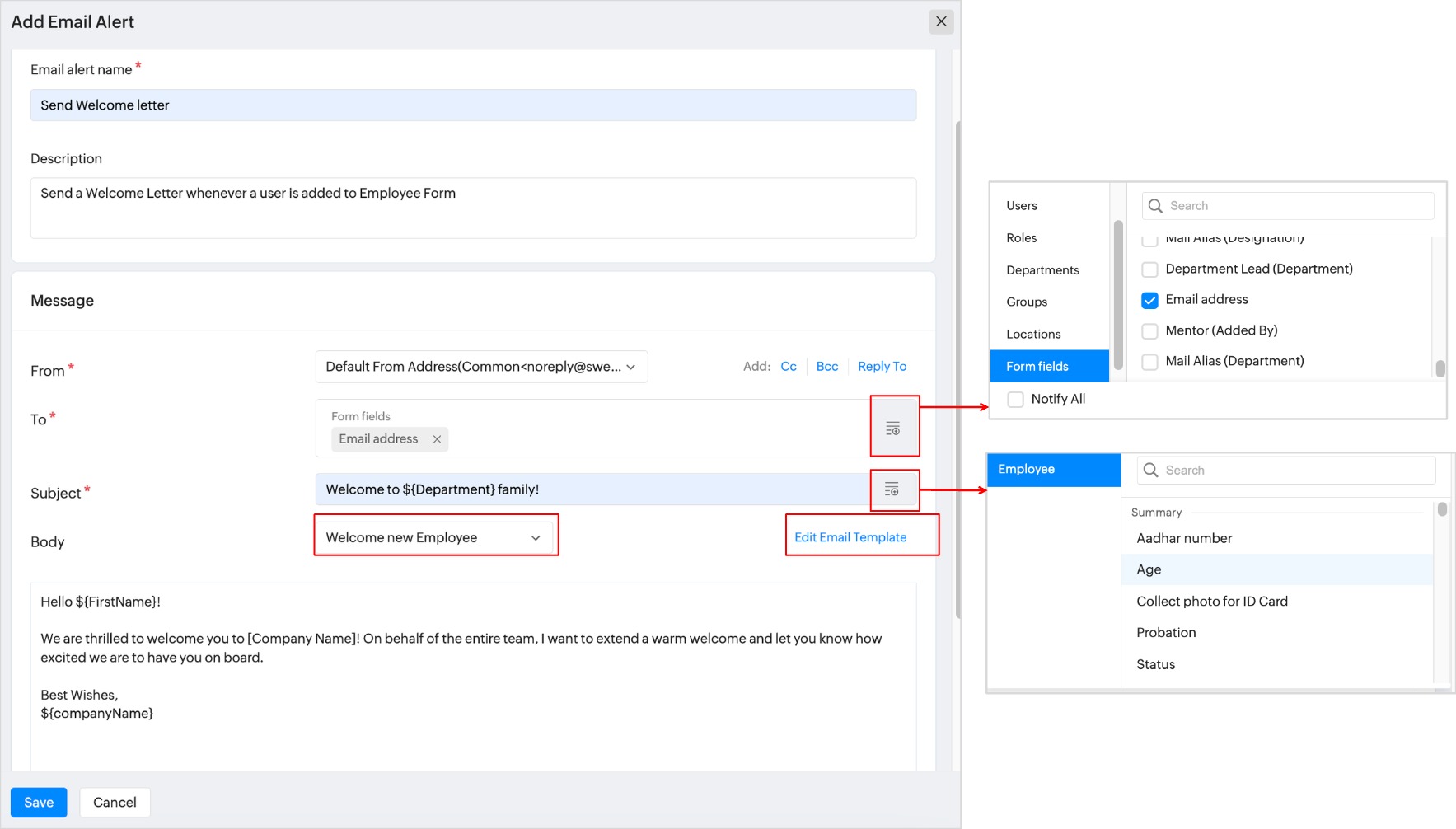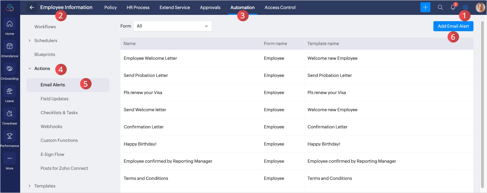 Zoho Peopleで自動化されたメール通知を設定する方法