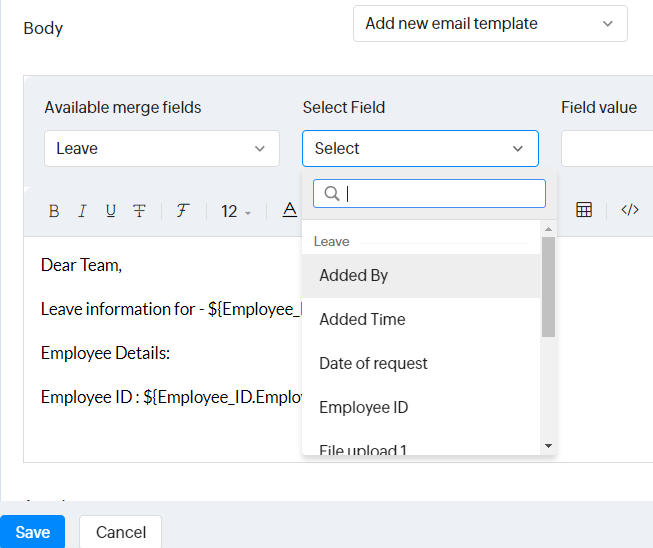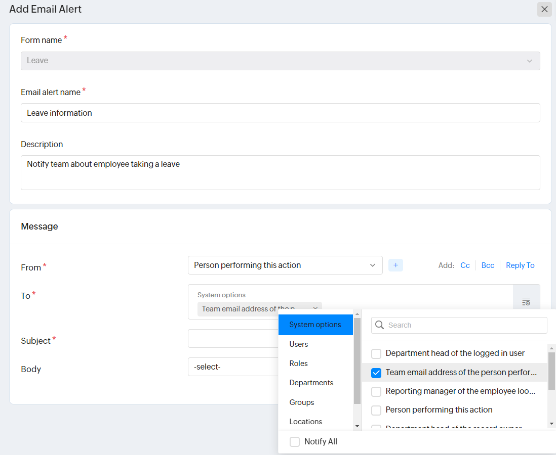 7. ワークフローが追加され、従業員が休暇を取ると自動的にチームメンバーに通知されます。