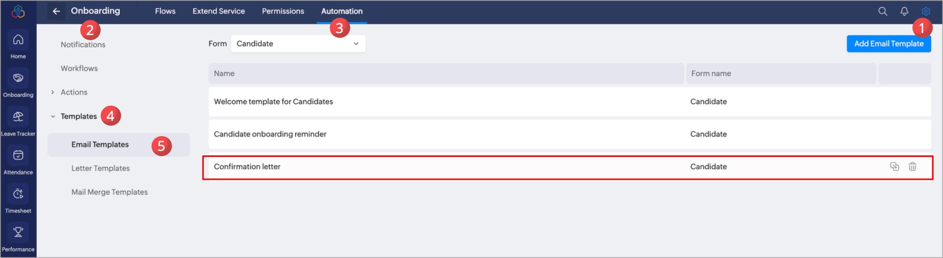 メールテンプレートを編集するには、[設定]→任意のサービス→[自動化]→[テンプレート]→[メールテンプレート]の順に移動して、テンプレートをクリックします。