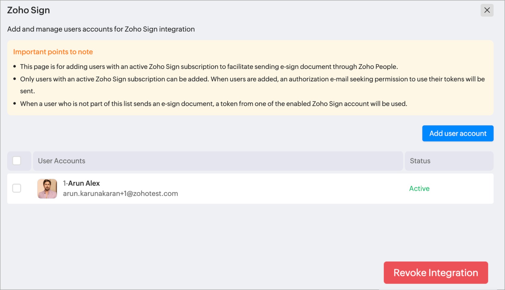 1. 電子署名の処理を実行するには、Zoho Signの有効なライセンスが必要です。