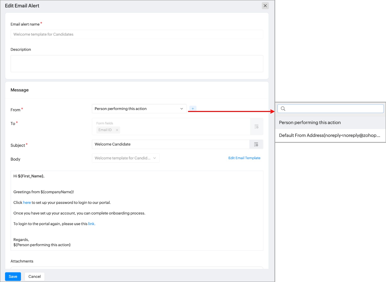 必要に応じて、従業員への歓迎メールや入社手続きのリマインダーを有効/無効にできます。