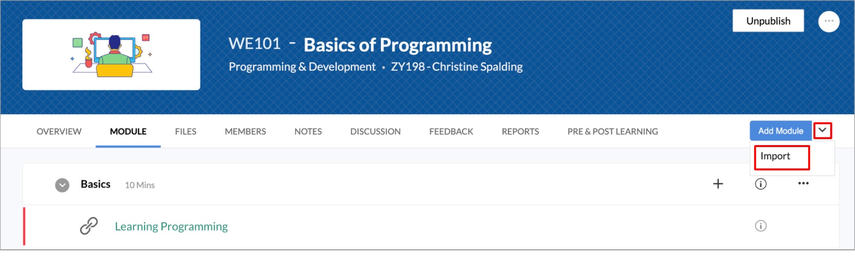 コースで新しい単元を作成するだけでなく、他のコースから単元をインポートすることも可能です。単元をインポートするには、以下の手順を実行します。