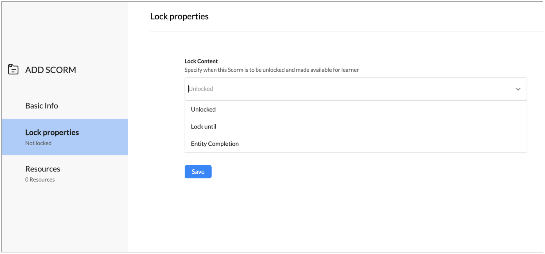5. ロックの詳細情報タブ指定日まで、または特定の項目が完了するまでコースをロックしたい場合は、ここで設定できます。