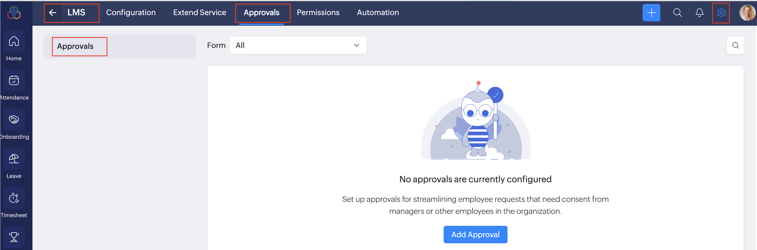 承認を設定することで、組織の従業員や管理者による学習管理の独自フォームの申請を効率よく管理できます。承認の設定の詳細については、「承認の概要と利用例」をご参照ください。