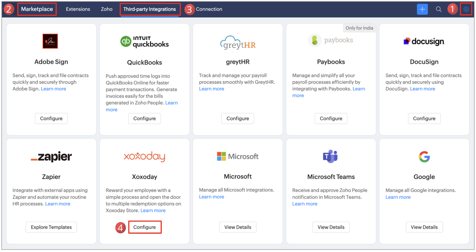 Zoho BooksとZoho Peopleとの連携 Zoho PeopleとZoho Booksを連携することで、Zoho Peopleの工数表などのデータを、Zoho Booksに同期し、請求書関連の処理をかんたんに行うことができるようになります。 Zoho Booksと連携するには [設定]→[マーケットプレイス]→[Zoho]→[Zoho Finance Suite](Zohoの会計サービス)→[詳細を表示する]の順に移動します。 Zoho Booksとの連携を有効にするには、Zoho ...